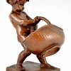 Antike Bronzeskulptur Junge mit Korb von Louis Ernest Barrias mit Gießermarke F. Barbedienne.