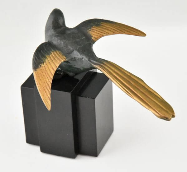Art Deco Bronze Buchstützen Vögel Bachstelzen signiert von Georges Lavroff, gestempelte Nummer.