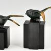 Art Deco Bronze Buchstützen Vögel Bachstelzen