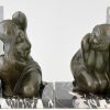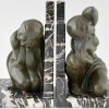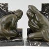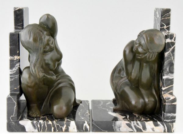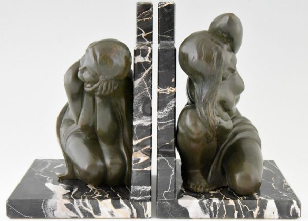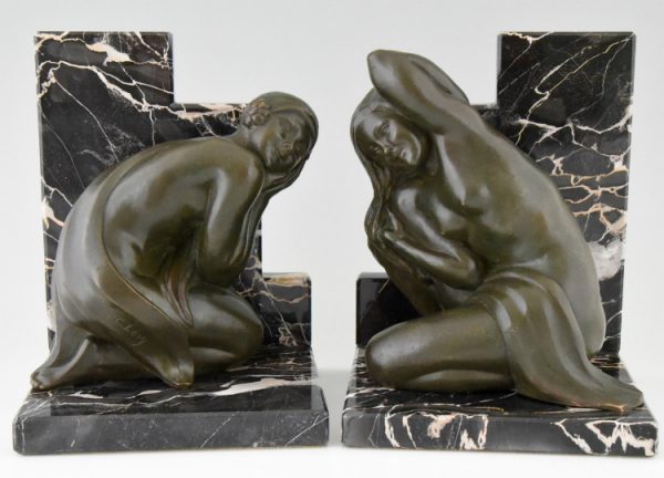 Hard to find pair of bronze Art deco bookends with kneeling nudes by the French sculptress Clarisse Levy Kinsbourg (Born in France in1896)