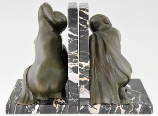 Both bronzes are different and the are mounted on very special marble base. These bookends look great in your library but can also be used as sculpture on a desk or mantelpiece.