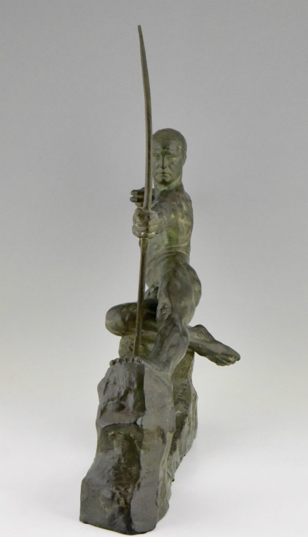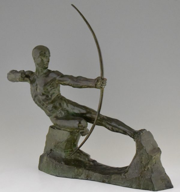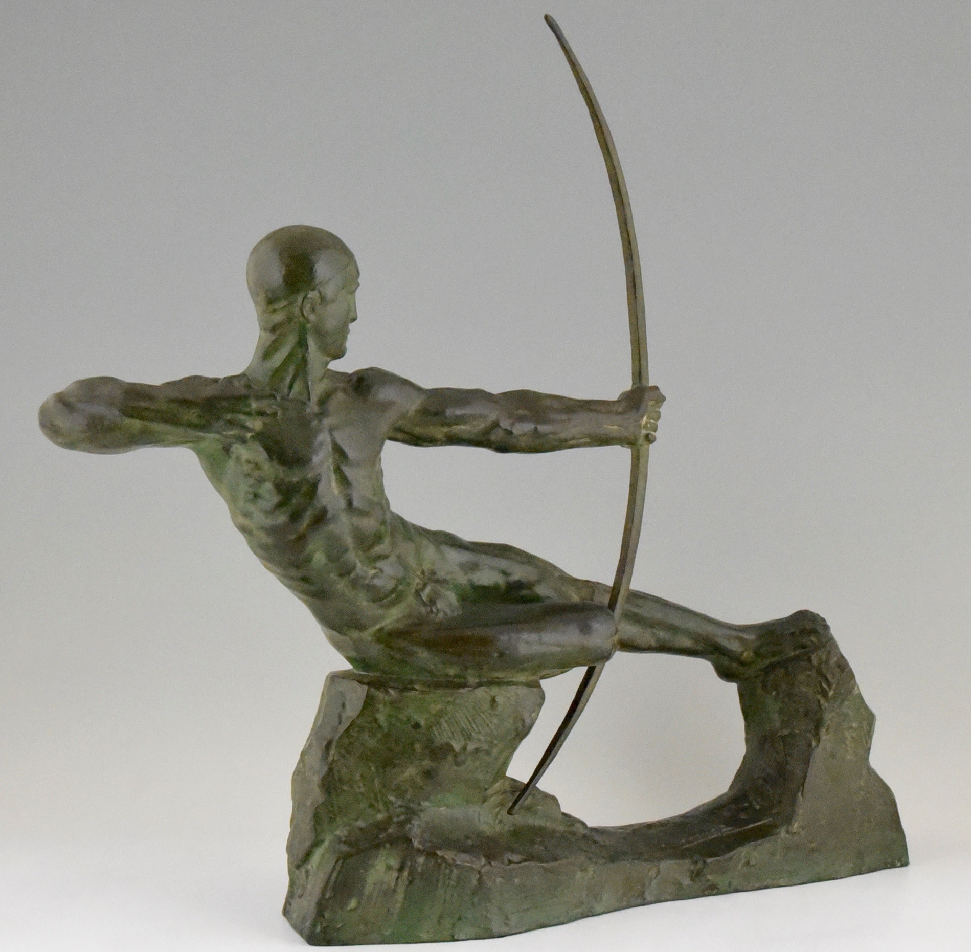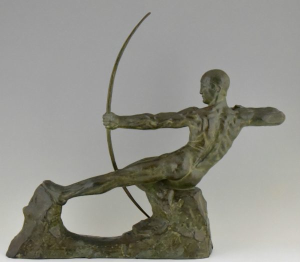 Hercules archer, A powerful Art Deco bronze of a male nude archer by the French/Belgian artist Victor Demanet, Born in 1895.