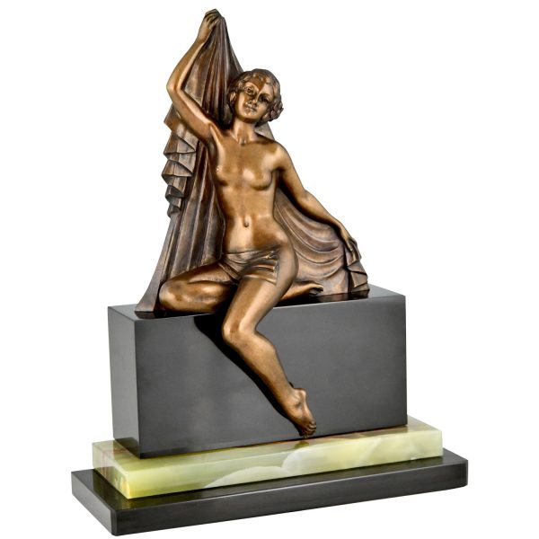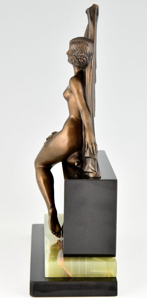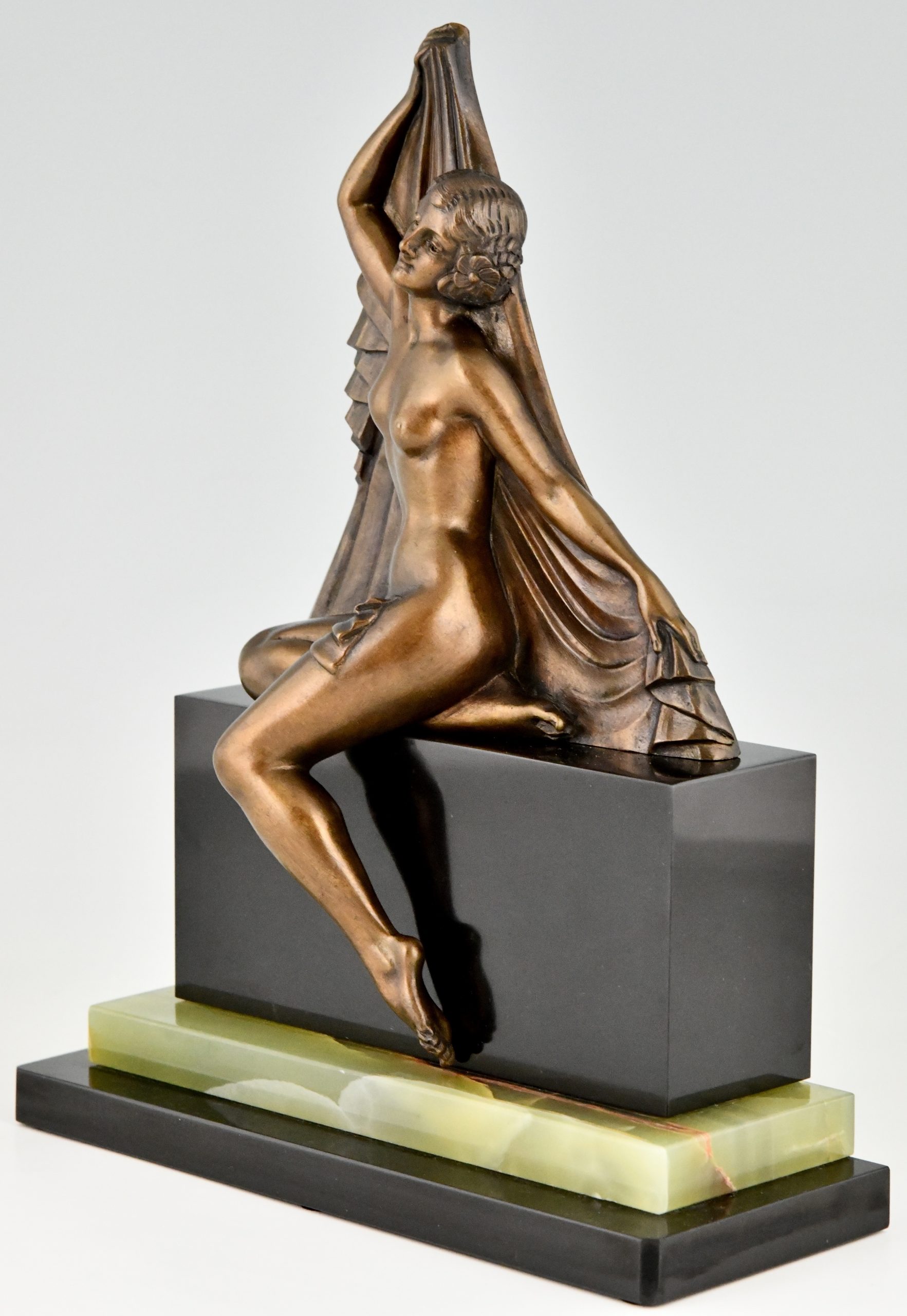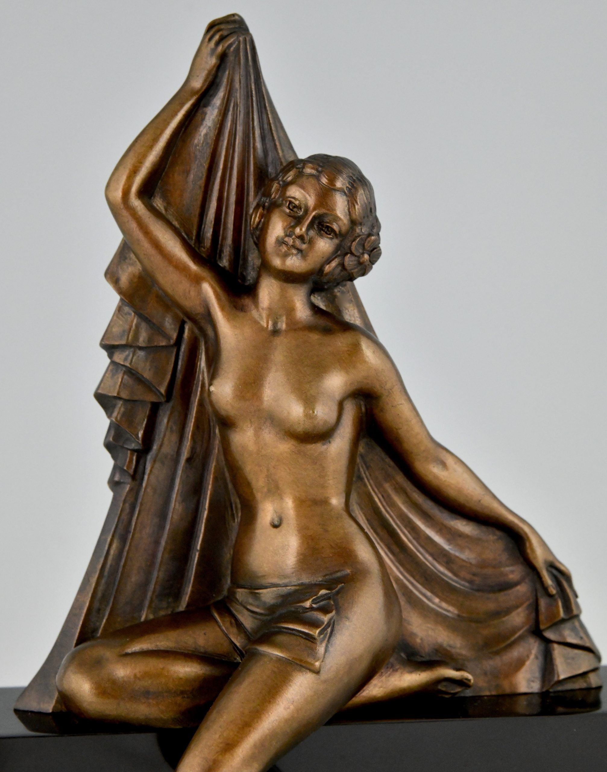 Art Deco Bronze Skulptur Frauenakt met Schleier