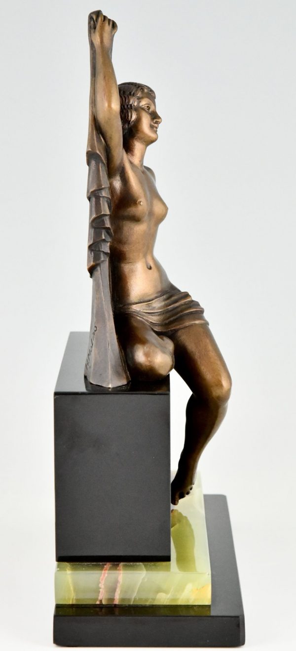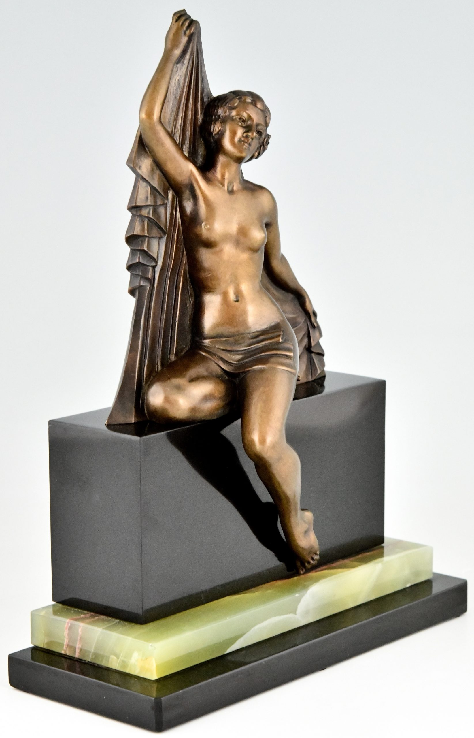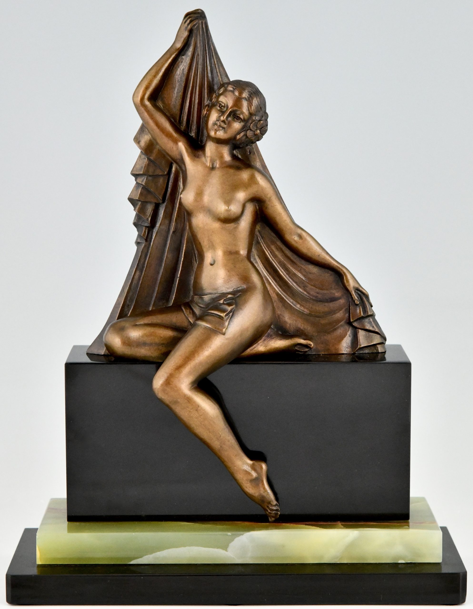 Art Deco Bronze Skulptur Frauenakt met Schleier