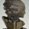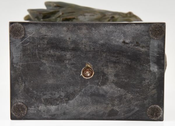 Signed by the French artist Louis Sosson. The sculpture has a lovely green patina and stands on a Belgian Black marble base. Ca 1930.