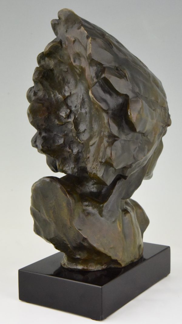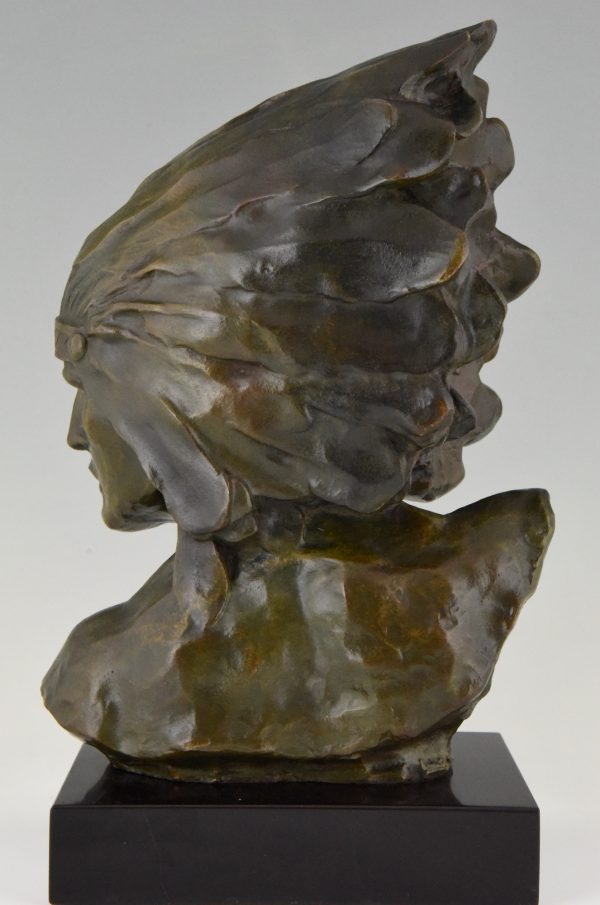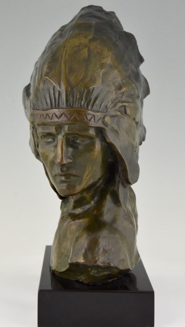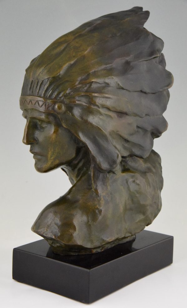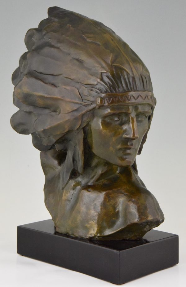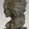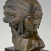 Stunning Art Deco bronze bust of an Indien with headdress.