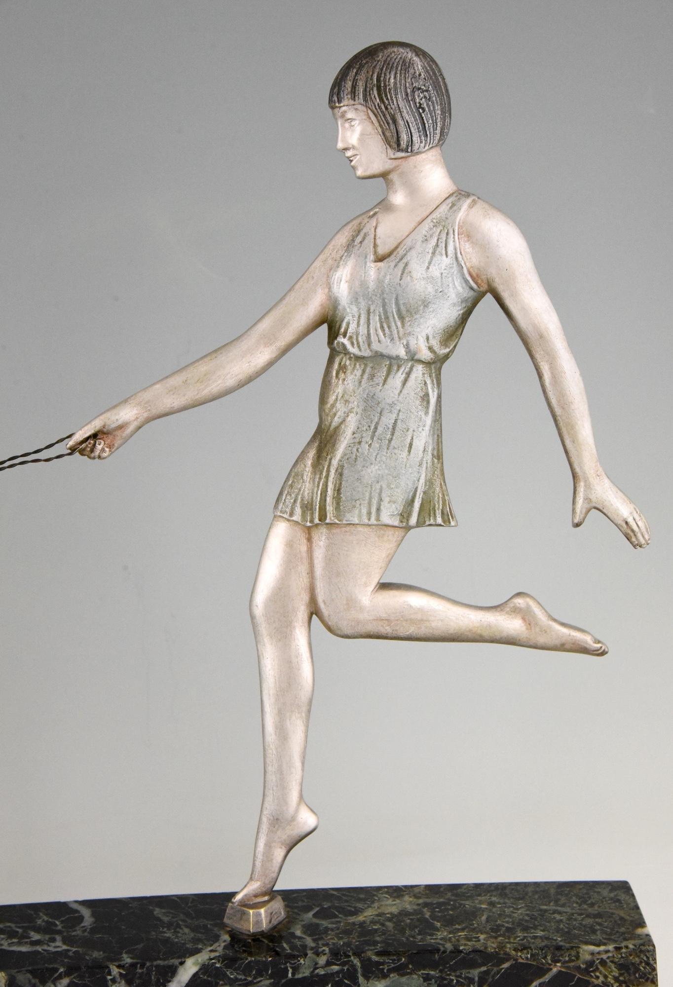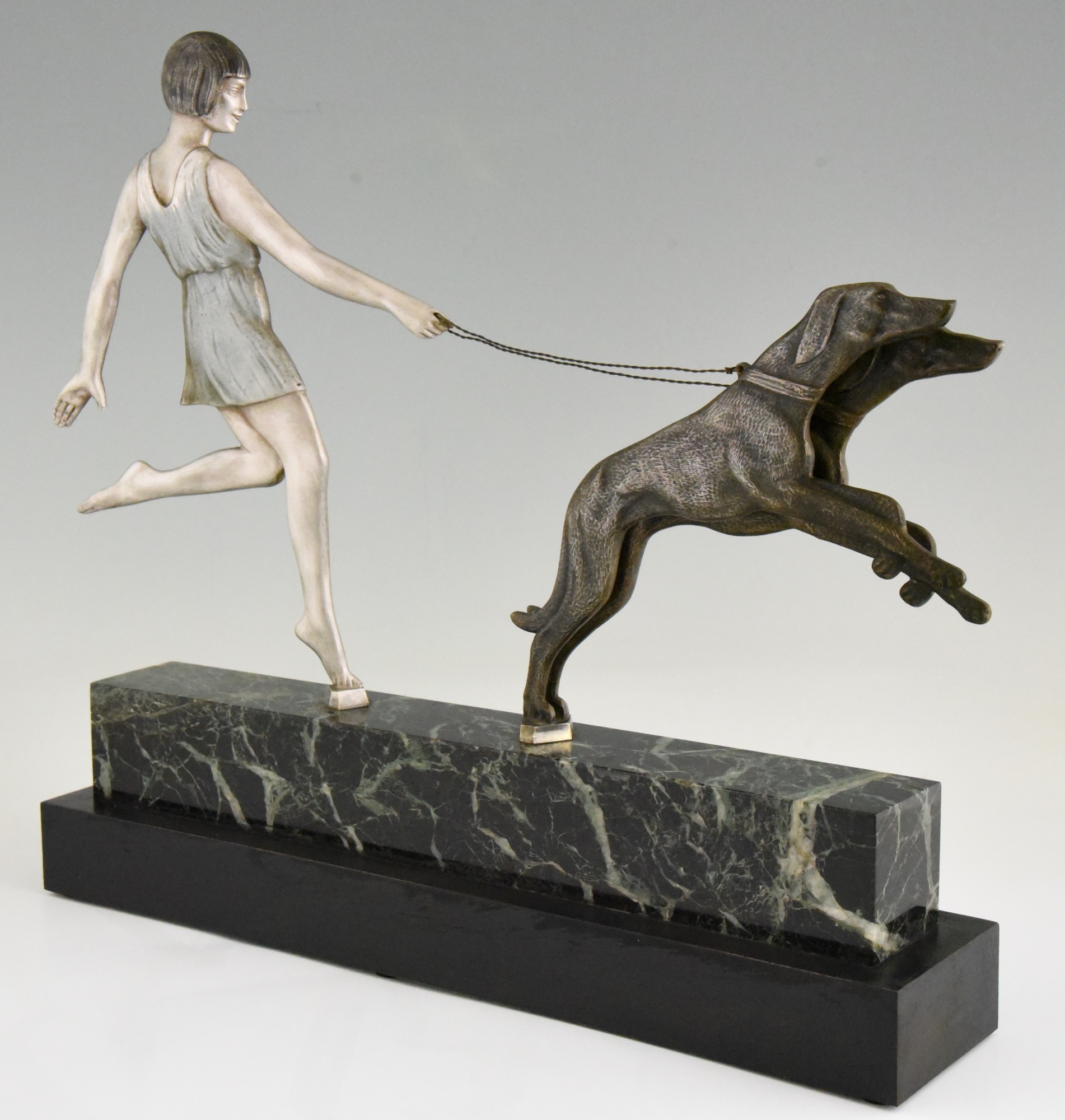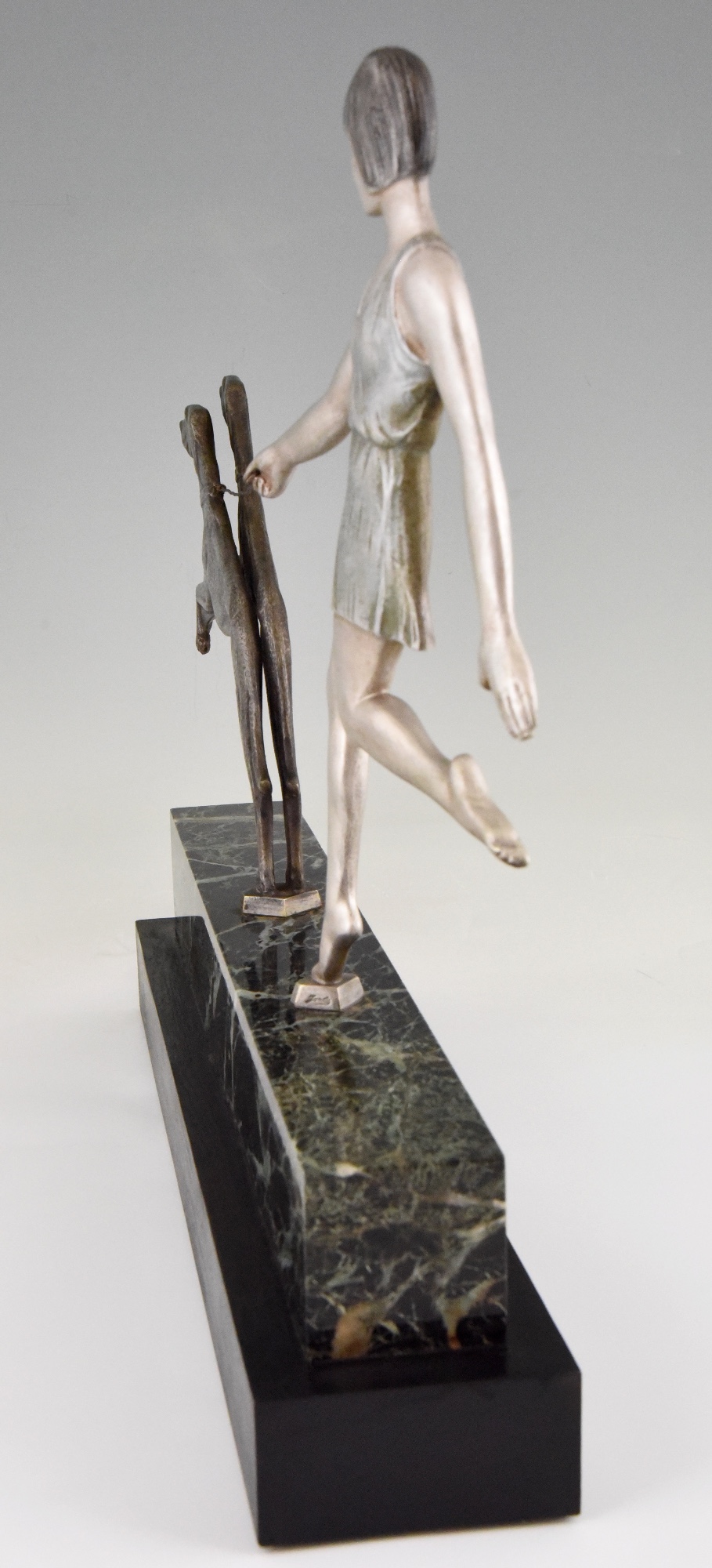 Art Deco Bronze Skulptur Mädchen mit Hunden