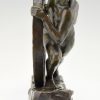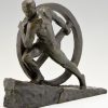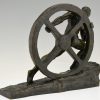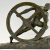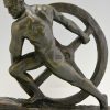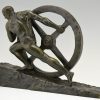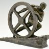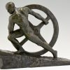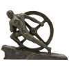 Art Deco Bronze Skulptur Mannlicher Akt mit Rad