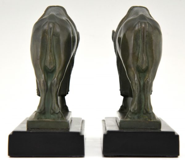 A very fine pair of Art Deco bison bookends by the famous French artist Max Le Verrier with lovely green patina. France 1930
