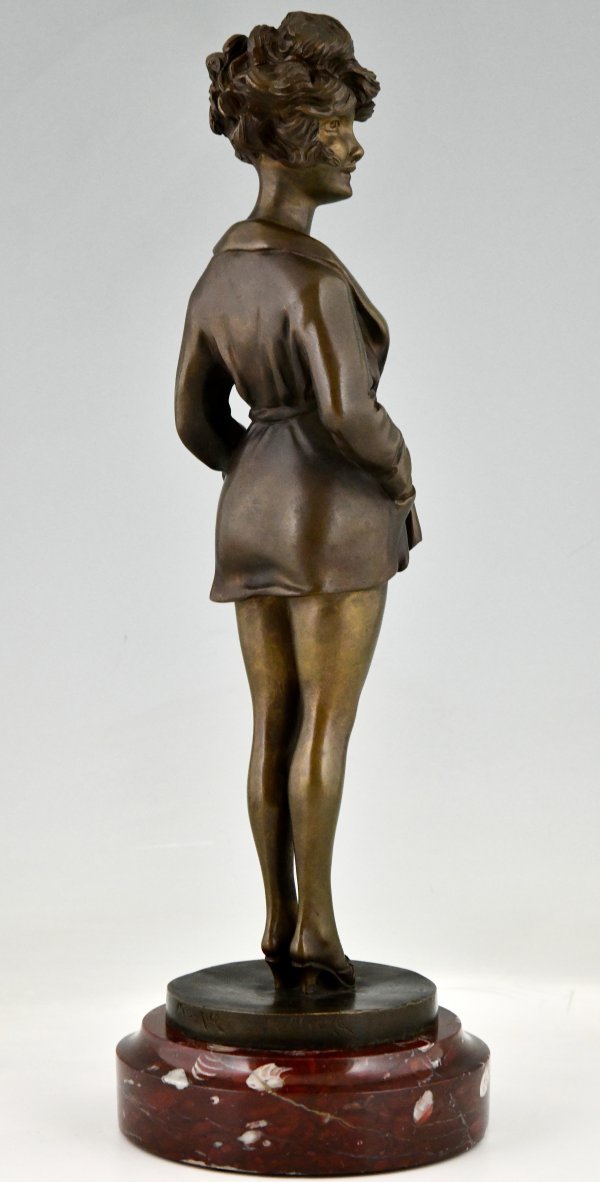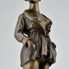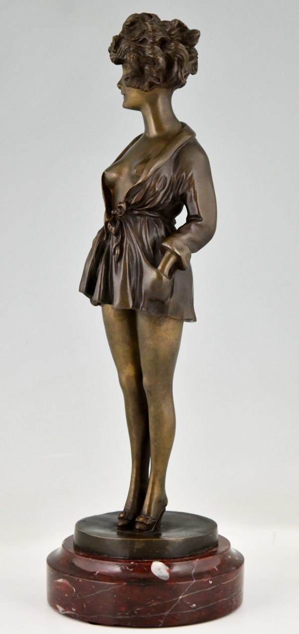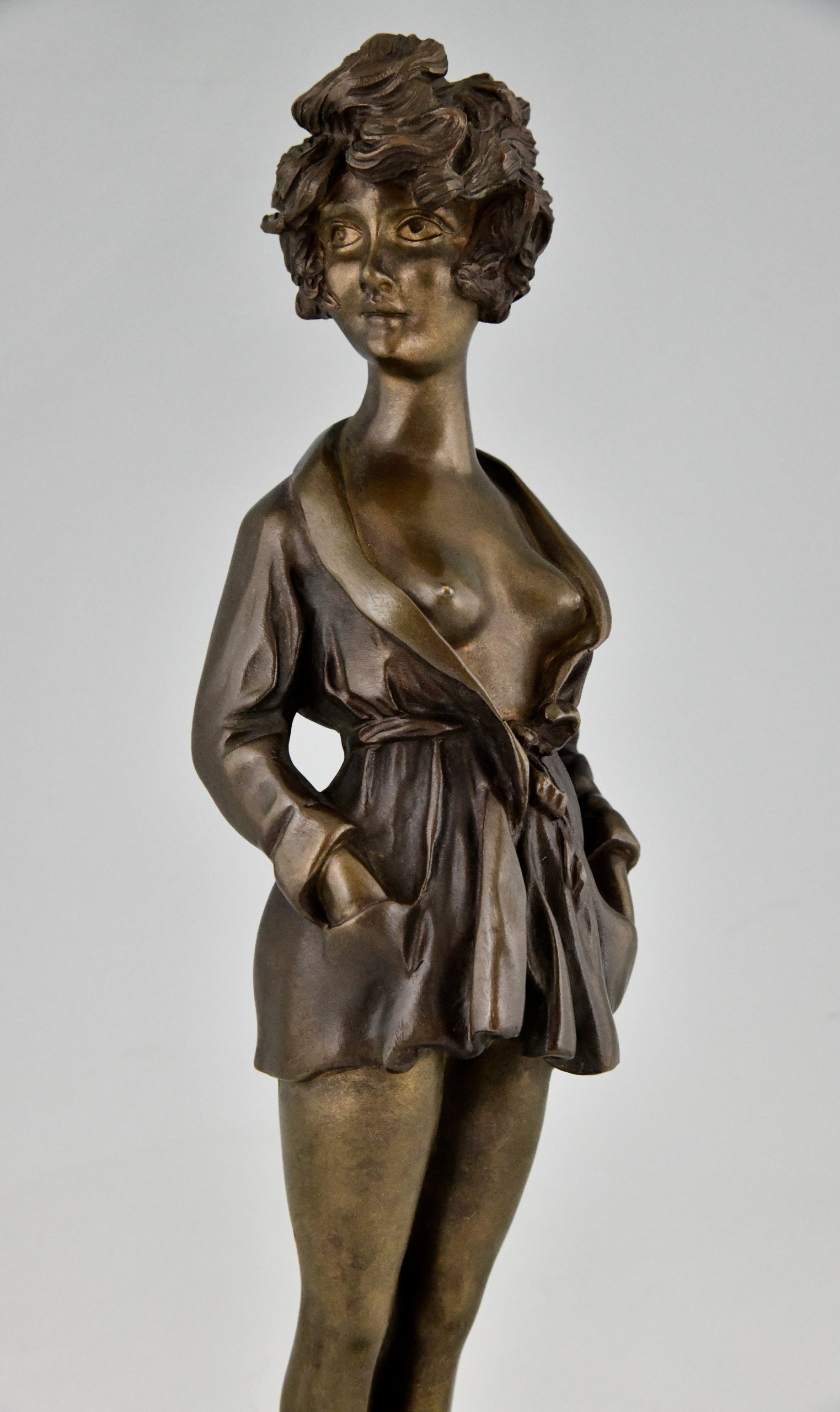 Art Deco erotischer Bronzeakt im Morgenmantel