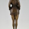 Art Deco Bronze Lampe Skulptur Dame mit Vase