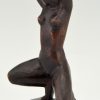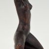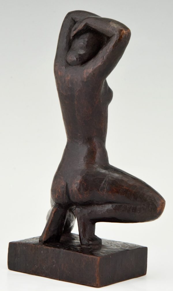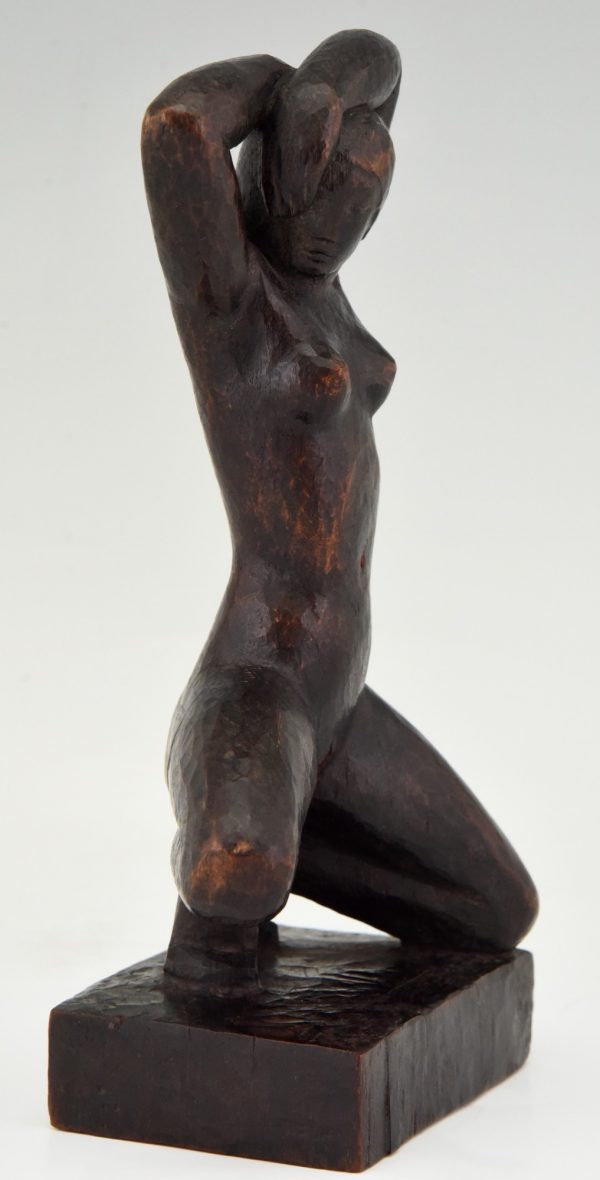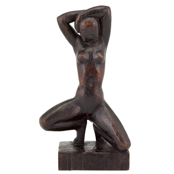One of a kind Art Deco sculpture in hand carved wood of a seated nude. Signed Michels and dated 1928.