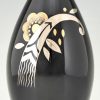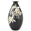 Art Deco Keramik Vase Schwartz, Gold und Silber