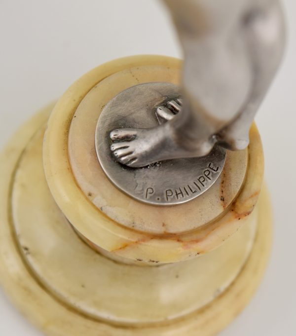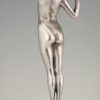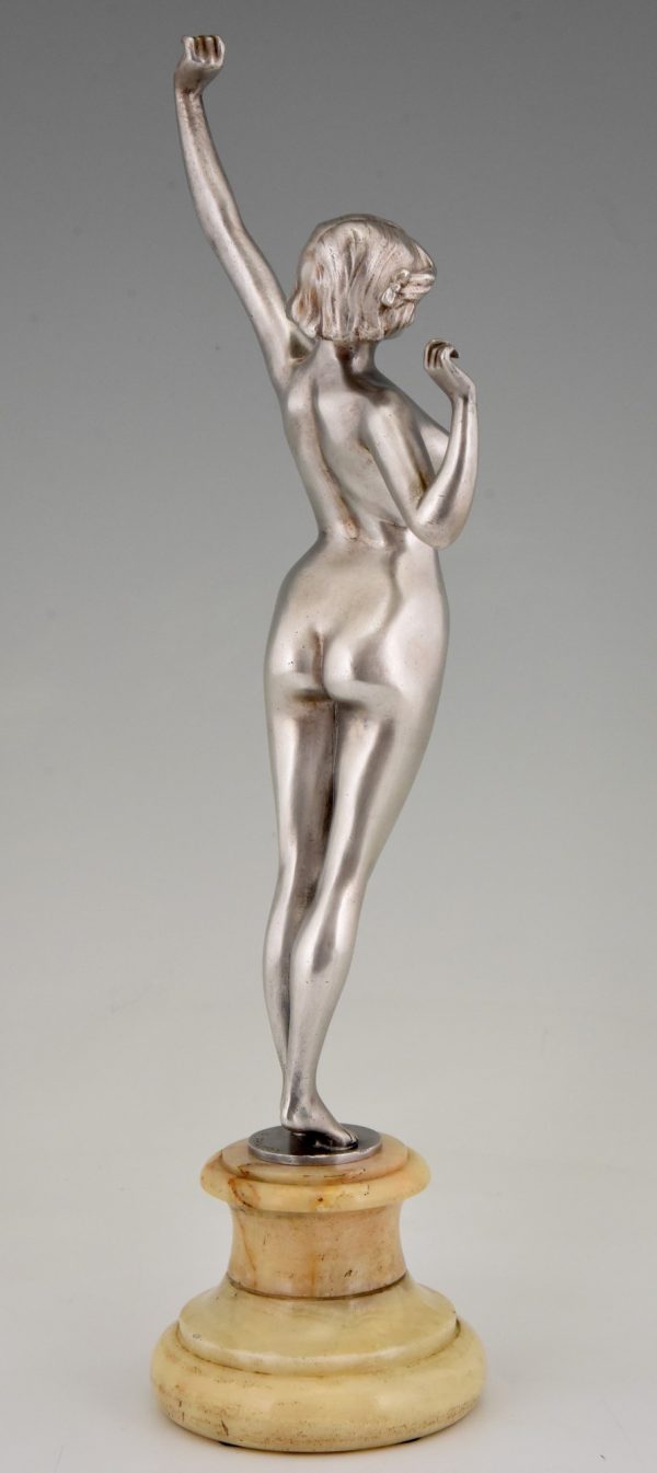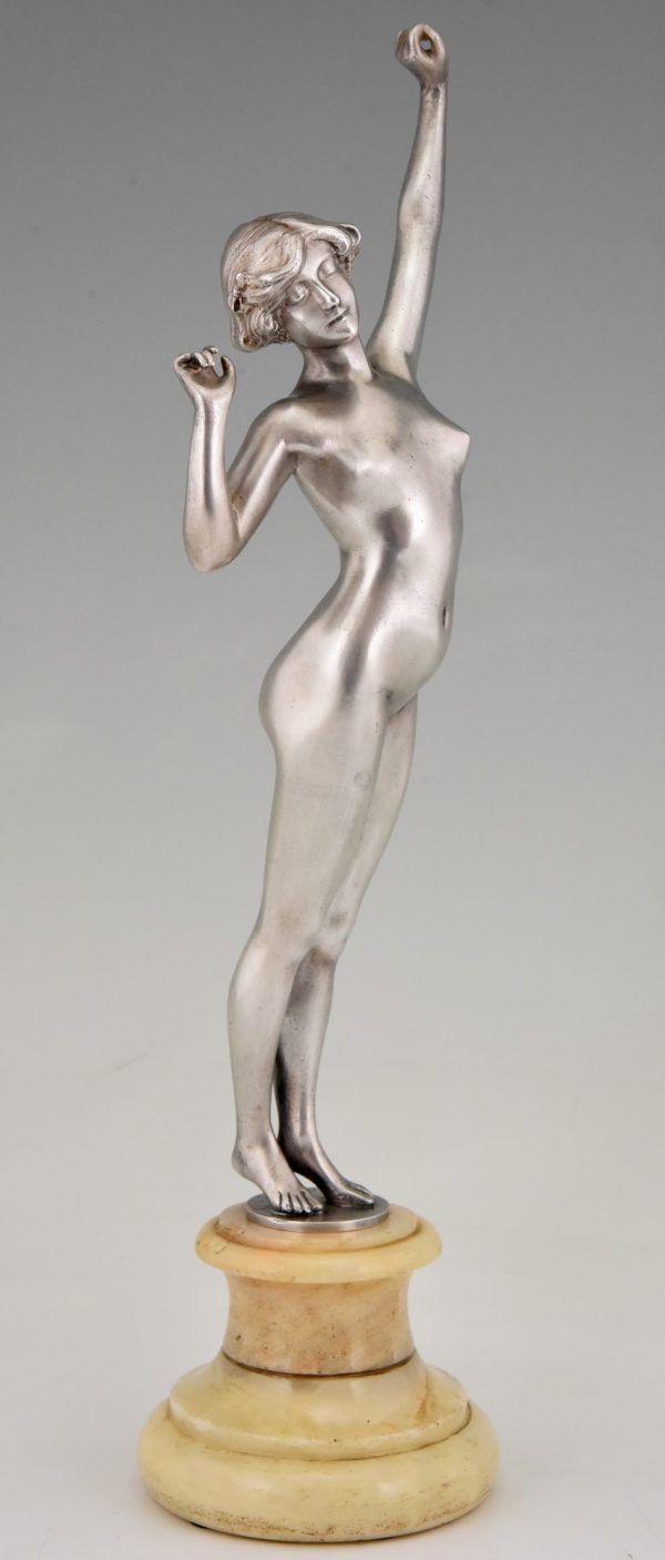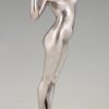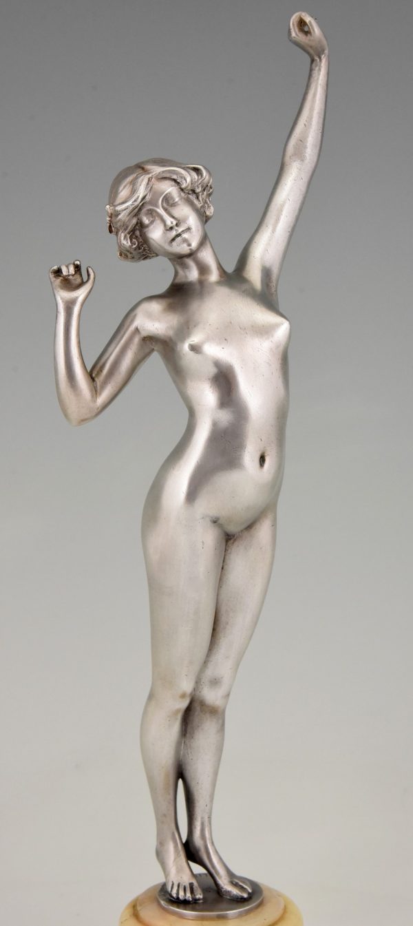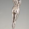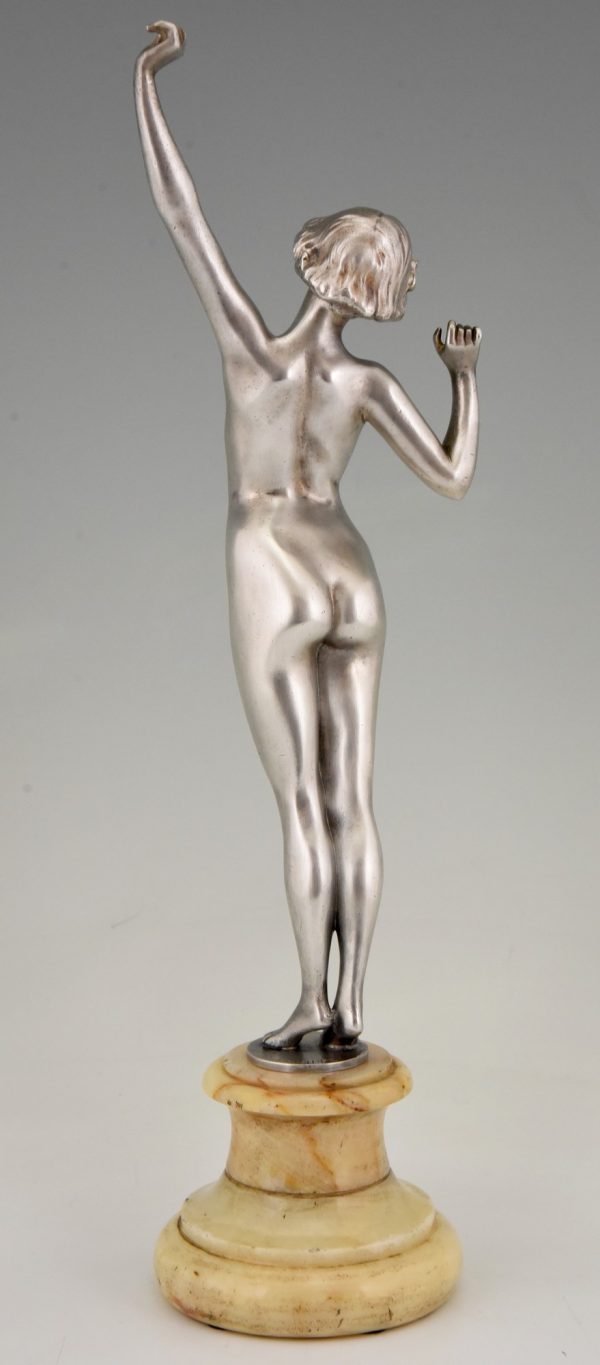 Art Deco bronze sculpture of a standing nude, Awakenings by Paul Philippe. France 1920. The silvered bronze stands on a marble base.