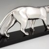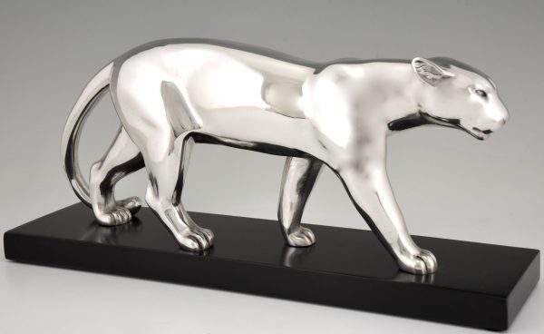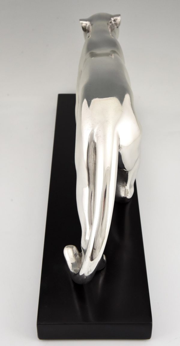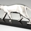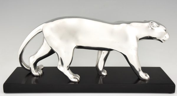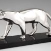 Art Deco silvered bronze panther sculpture by Emile Louis Bracquemond.