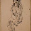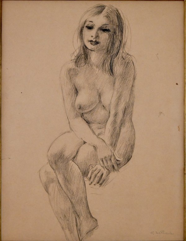 Art Deco Zeichnung eines sitzenden Akts, signiert vom belgischen Künstler Raf de Buck