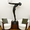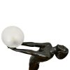 Clarté LEBENSGRÖSSE Art Deco Lampe Bronze Frauenakt mit Kugel.