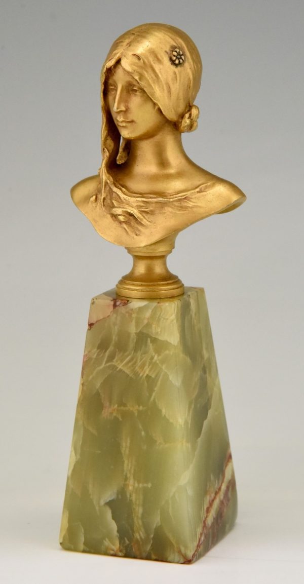 Jugendstil Bronze Buste junge Frau La Jeunesse