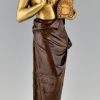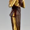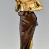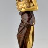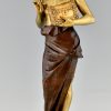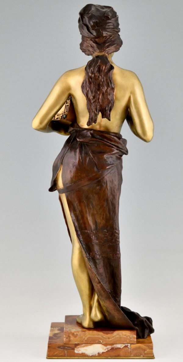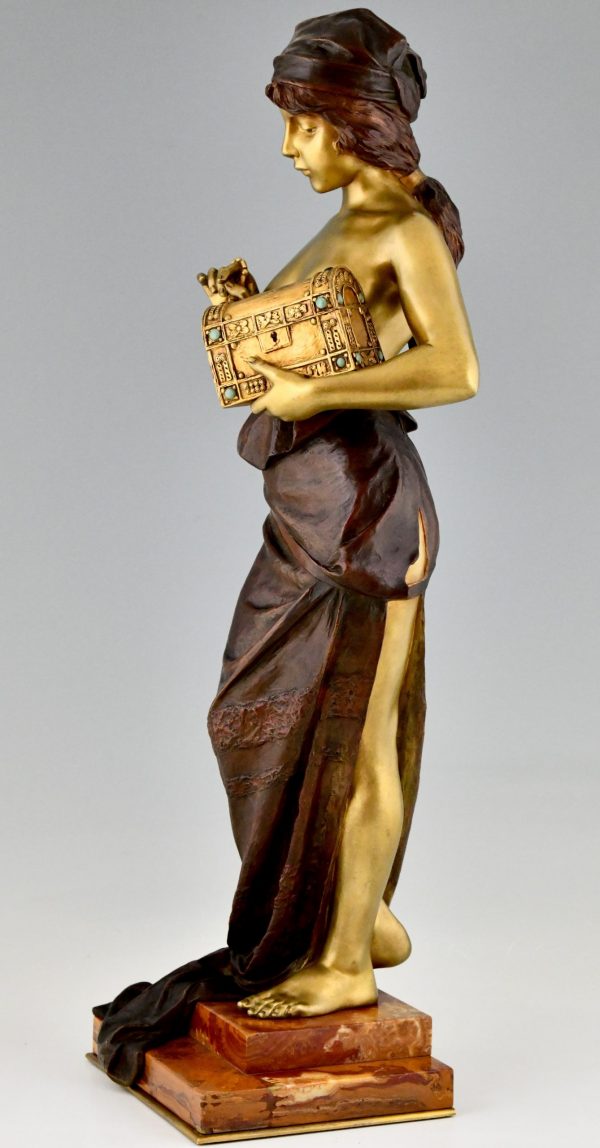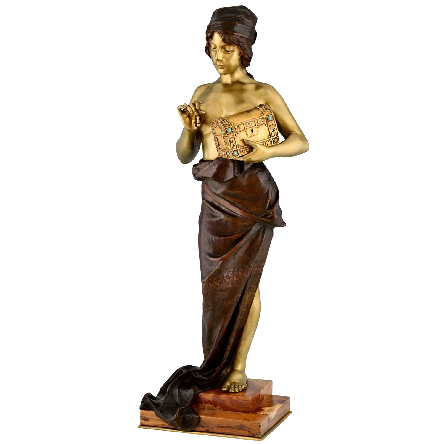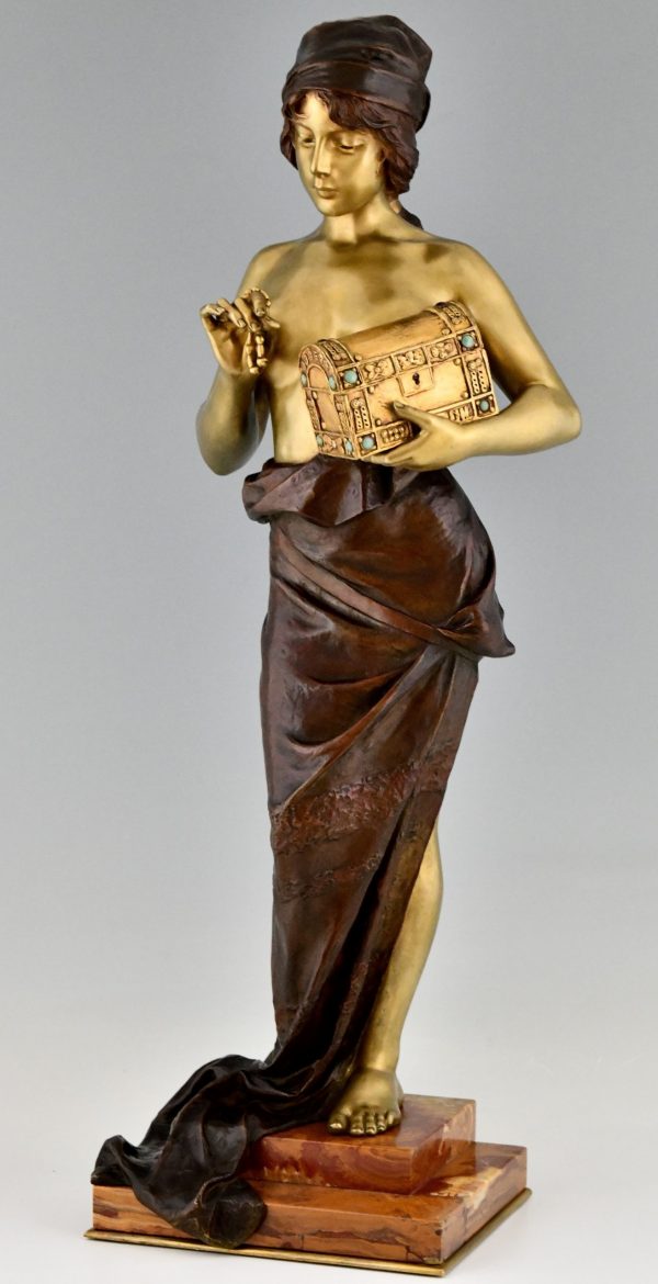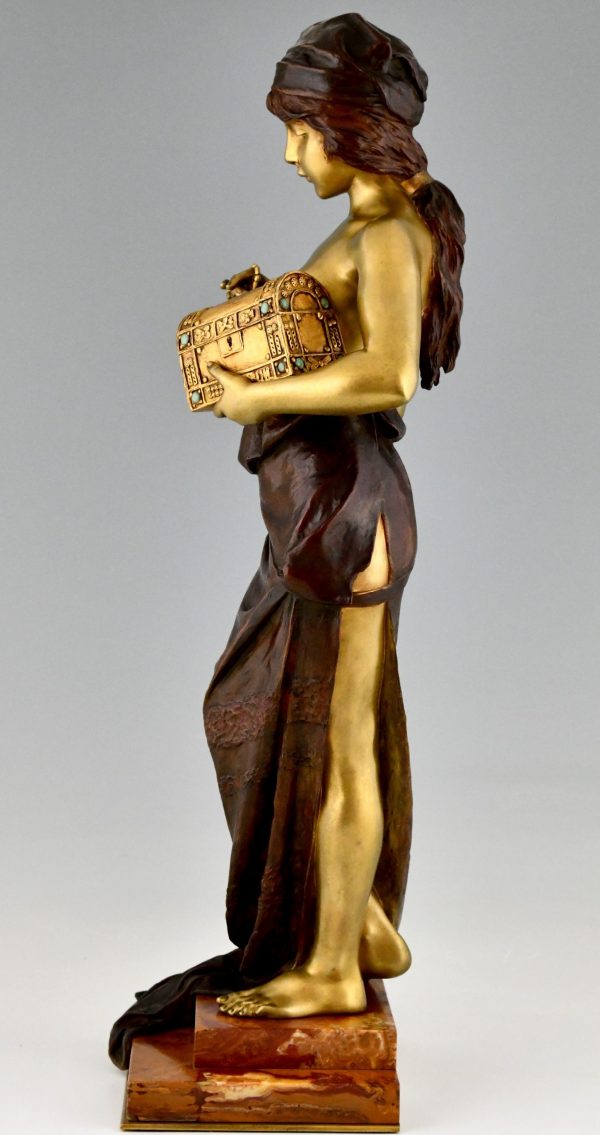 Jugendstil bronze Skulptur stehende Frau mit Schmuckkästchen