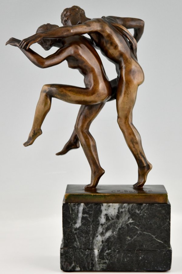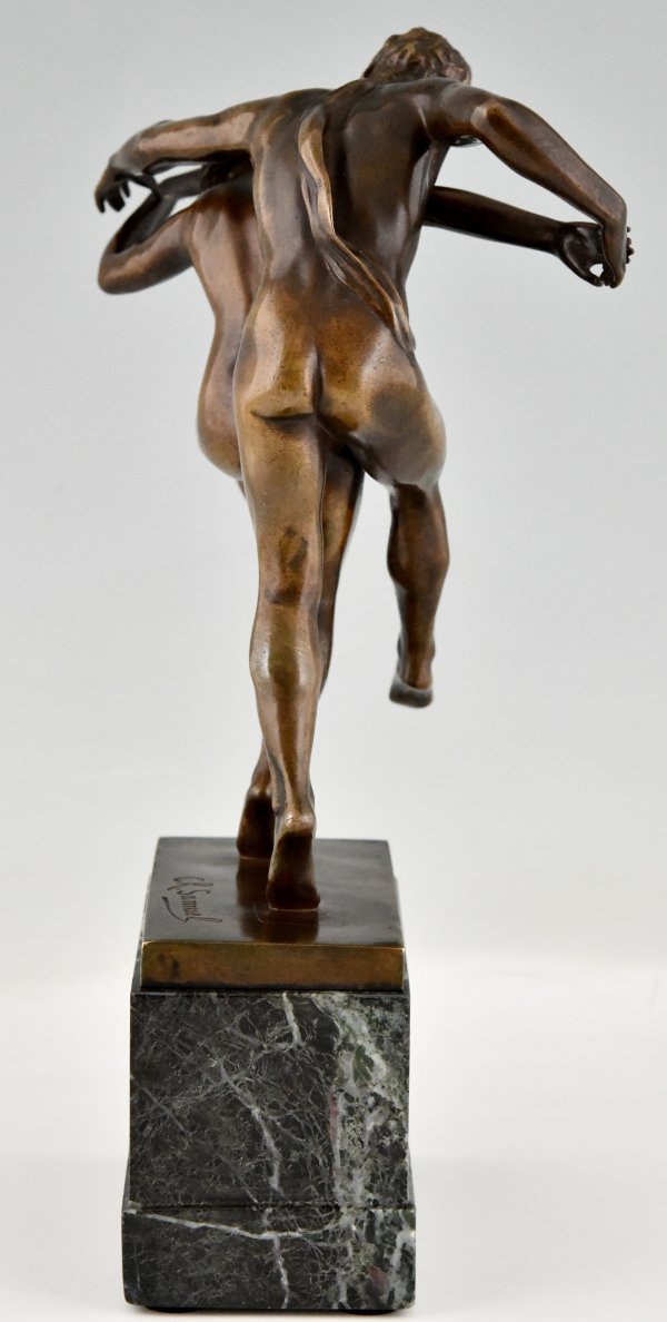 Jugendstil Bronze Skulptur tanzendes nacktes Paar, La Danse von Charles Samuel.