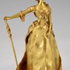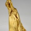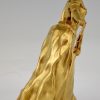 Jugendstil Bronze Skulptur vergoldet elegante Frau