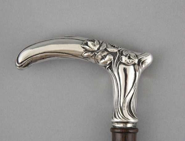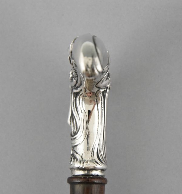 Jugendstil Spazierstock mit Frauenakt und Blumen