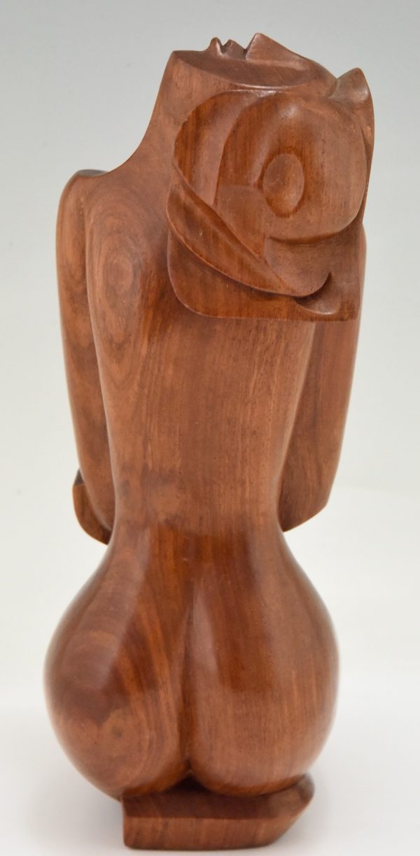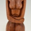 Mid Century Modern, Cubist style hand carved mahogany wooden sculpture of a seated nude, France 1960.