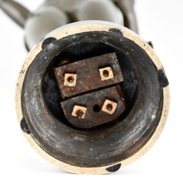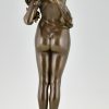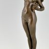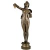 France ca. 1900. Beautiful tall Art Nouveau bronze sculpture of a standing nude holding raisins. Signed Maurice Bouval with foundry mark Colin Paris.