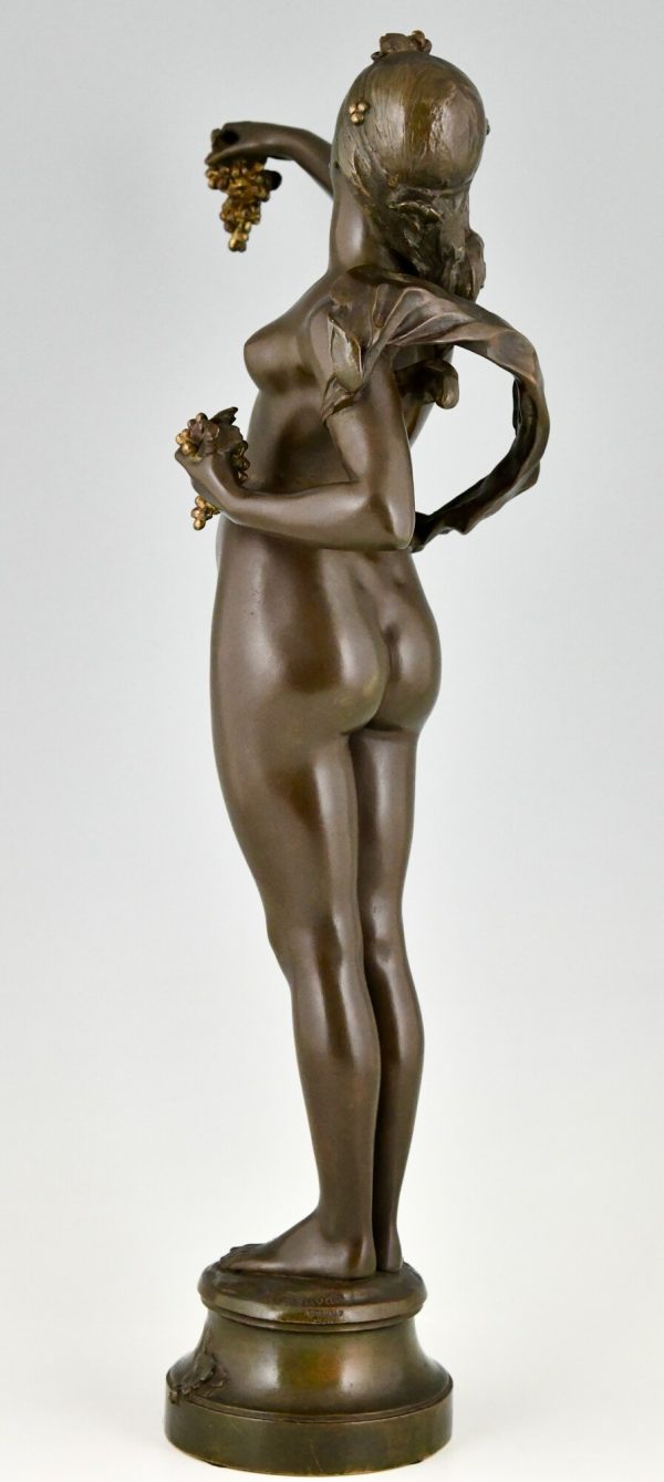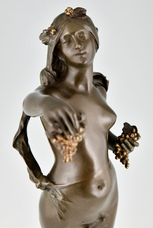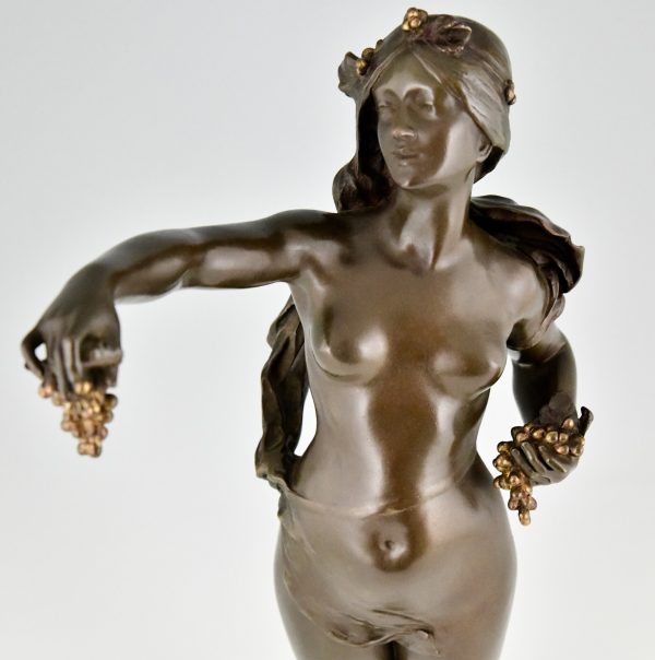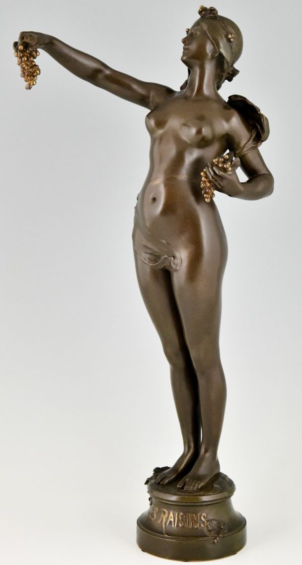 Les Raisins, Jugendstil Bronze Skulptur Frauenakt mit Trauben