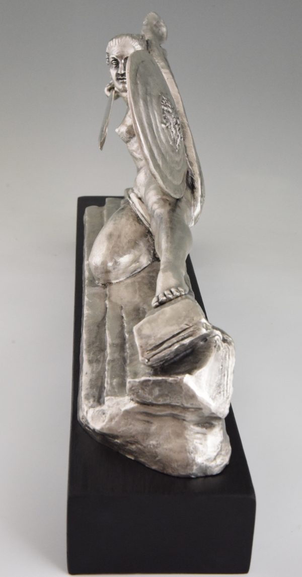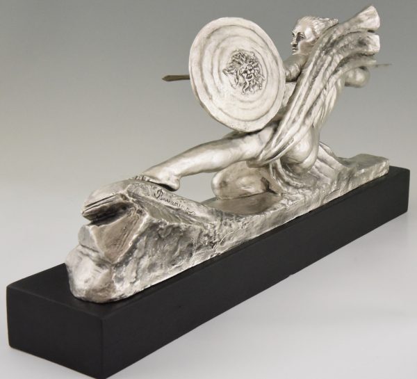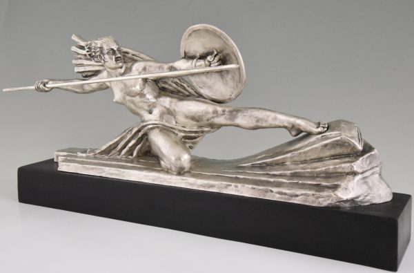 Amazone, Art Deco sculpture en bronze femme guerrière