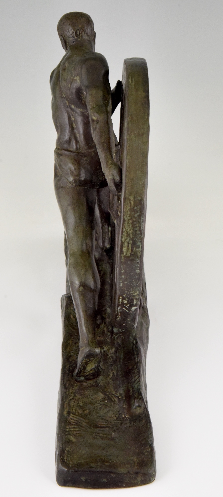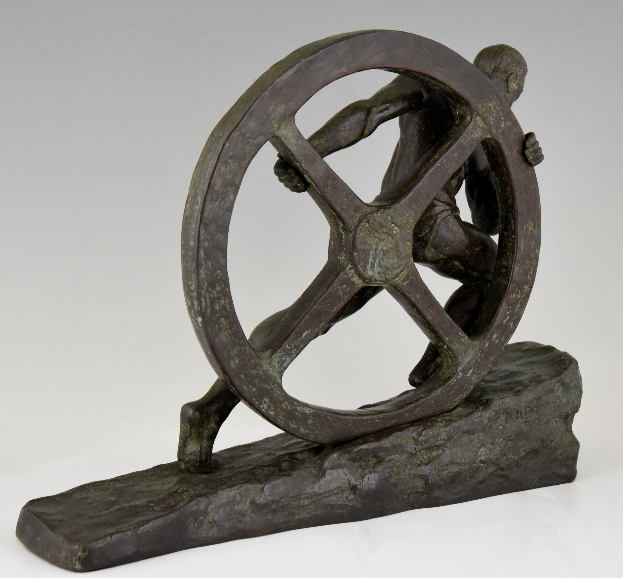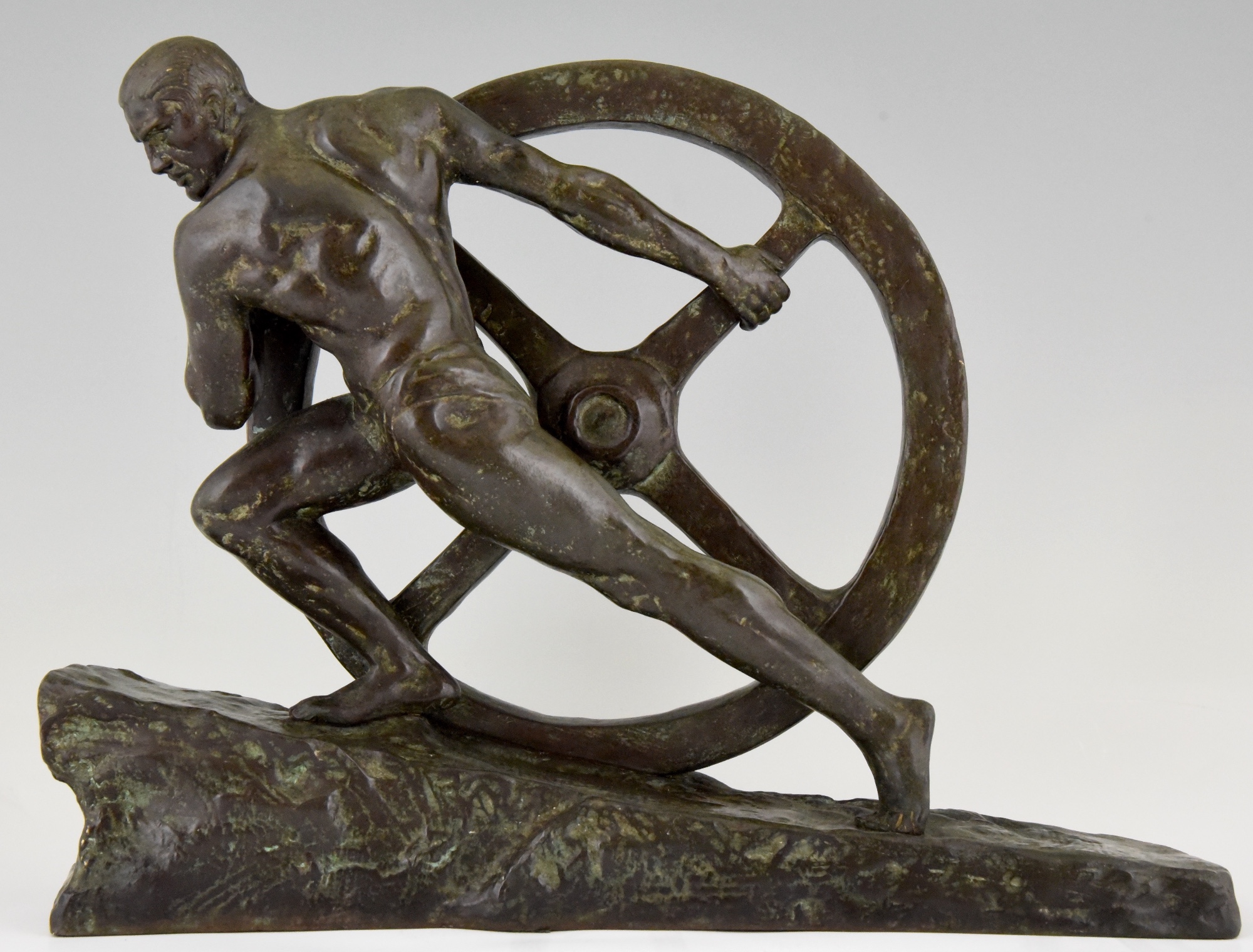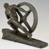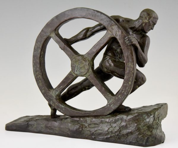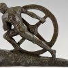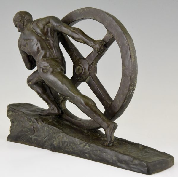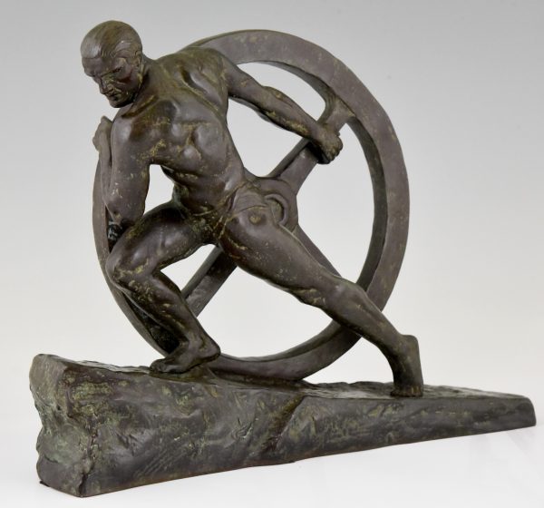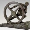 Art Deco bronze sculpture homme nu à la roue