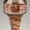 Pair of Art Deco urns in red marble and bronze with silver patina.  These beautiful cassoulet vases are made in France ca. 1930