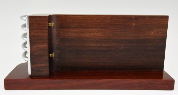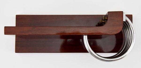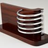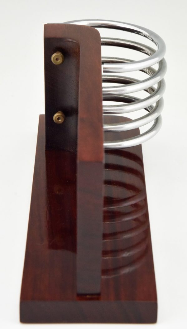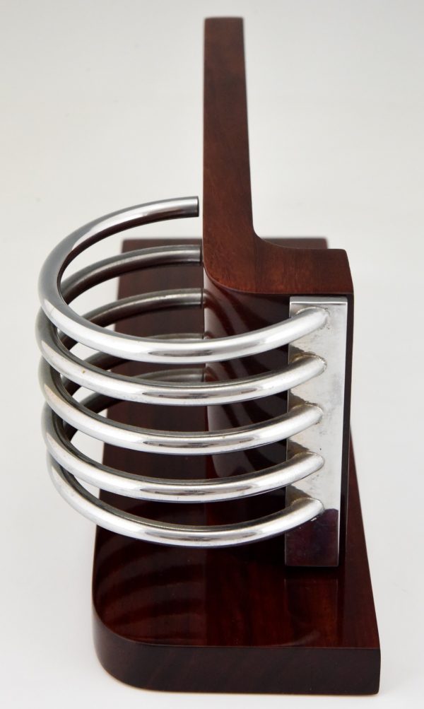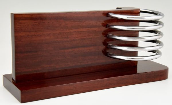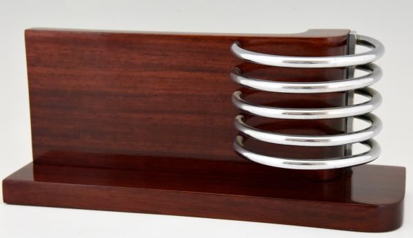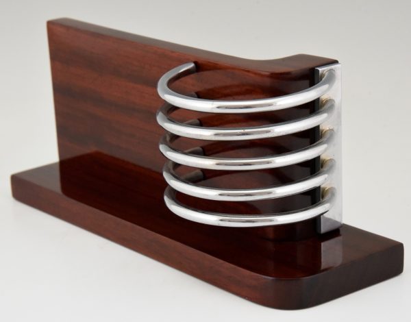 Stylish Modernist Art Deco letter holder, letterstand by the French designer Louis Prodhon, France 1920. Palisander wood and chromed metal.