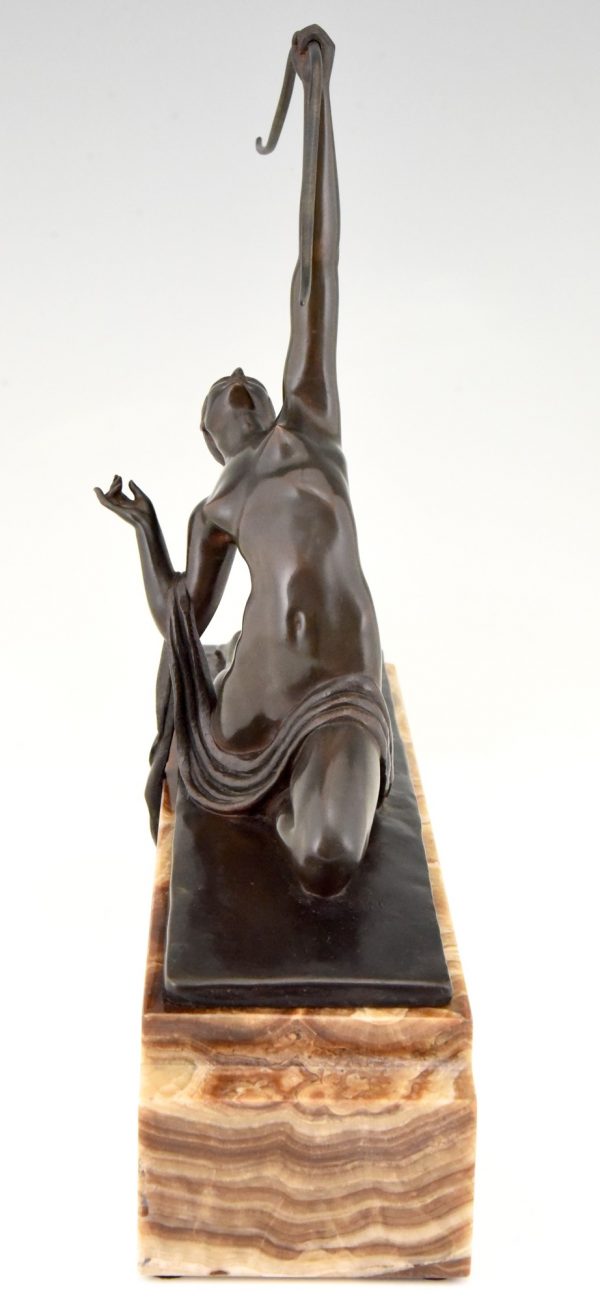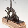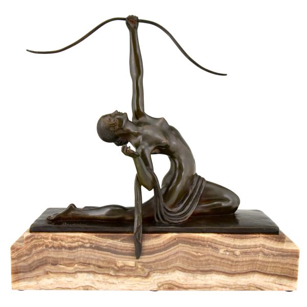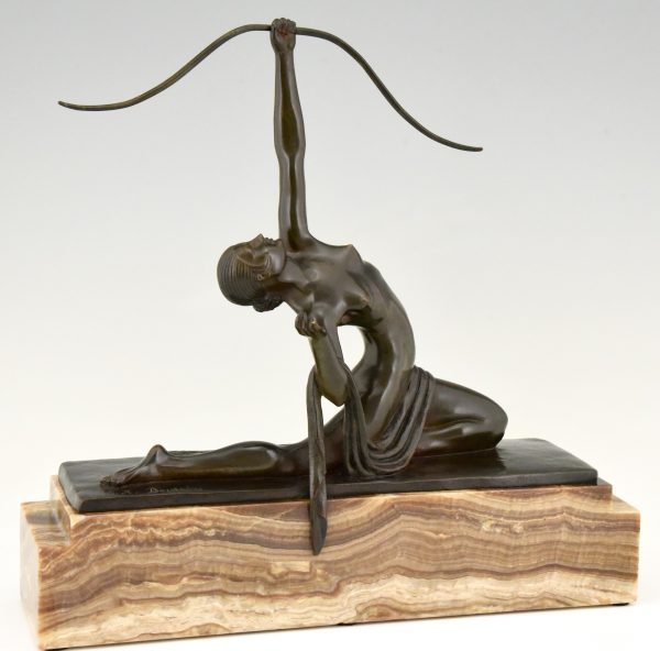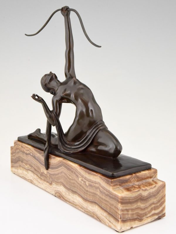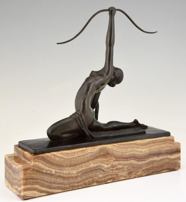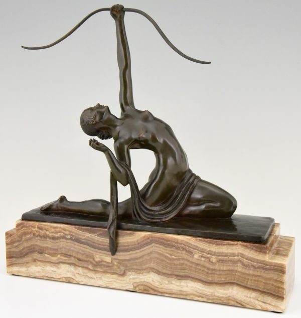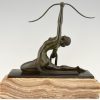 Art Deco sculpture en bronze femme nue à l’arc Diane
