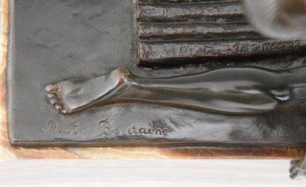 | Literature | This model is illustrated on the cover of “The Encyclopedia of Decorative Arts 1890-1940” By Philippe Garner. General information about Marcel Bouraine: “Art deco sculpture” by Victor Arwas, Academy. “Art deco and other figures” by Brian Catley. “Bronzes, sculptors and founders” by H. Berman, Abage. “Dictionnaire des peintres,sculpteurs,dessinateurs et graveurs” by E. Benezit. Gründ “Dictionnaire illustré des sculpteurs animaliers & fondeurs de l’antiquité à nos jours “ by Jean Charles Hachet. Argus Valentines. |