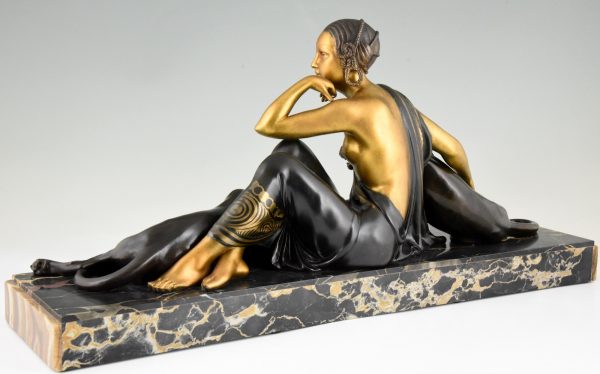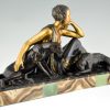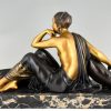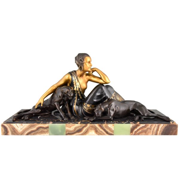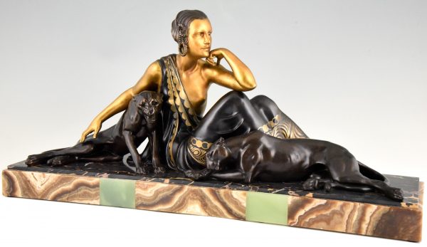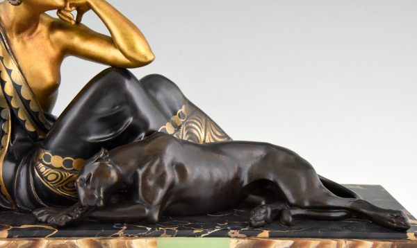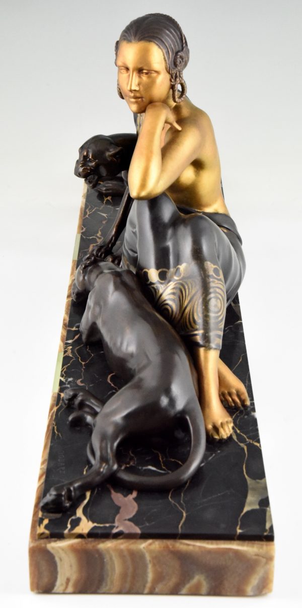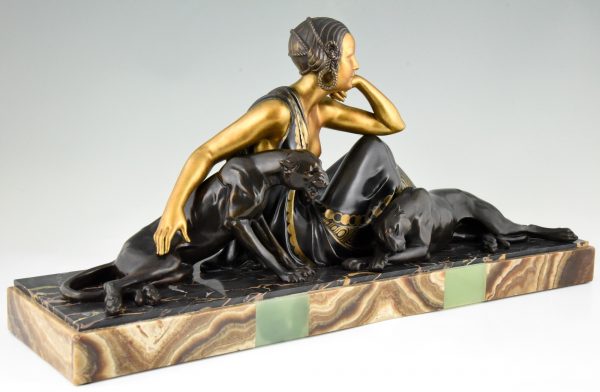 Art Deco sculpture femme aux panthères doré