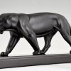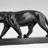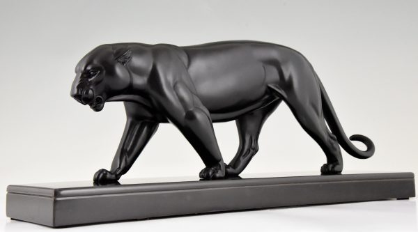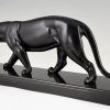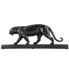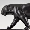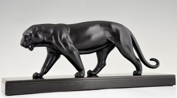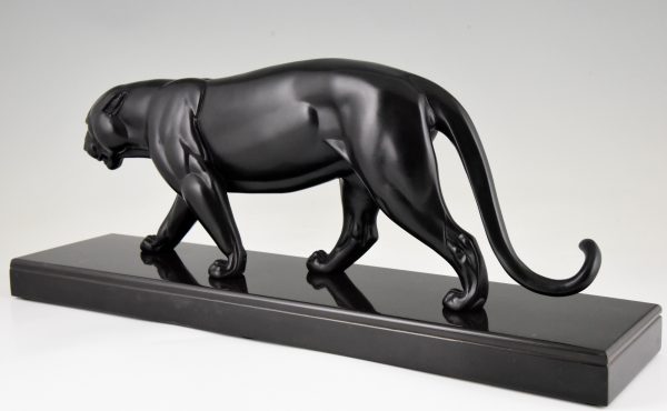 Stylish Art Deco sculpture of a walking black panther. Patinated Art Metal on Belgian Black marble base. Signed by Irenee Richard, France 1930.