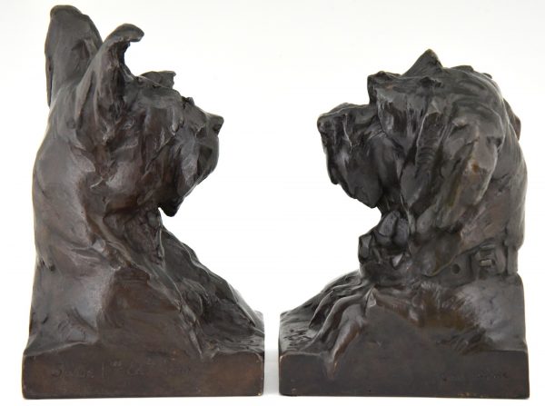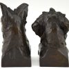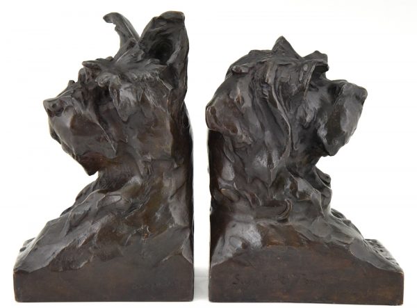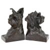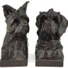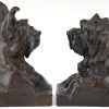 Art Deco sculpture serre livres bronze buste de chiens