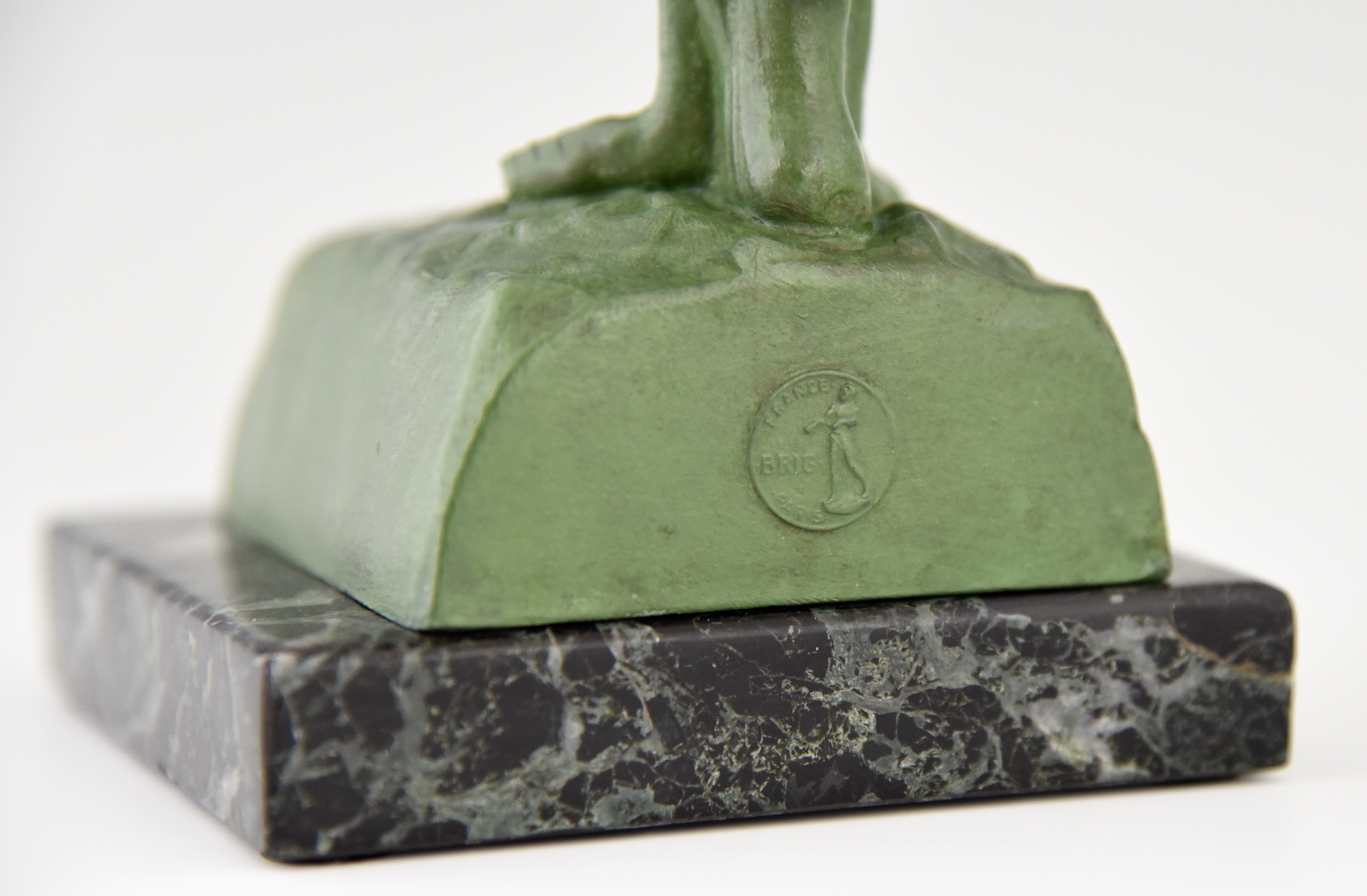 | Matériau | Art Metal with green patina Dark green marble base. |