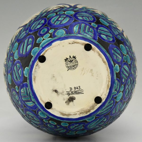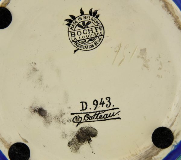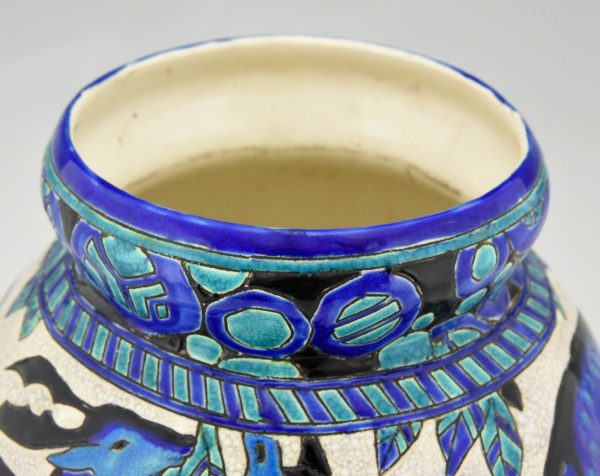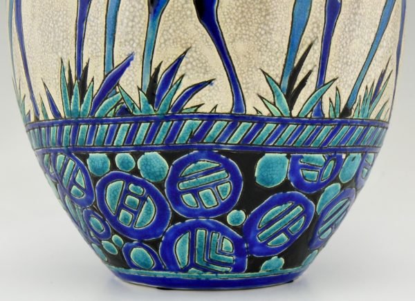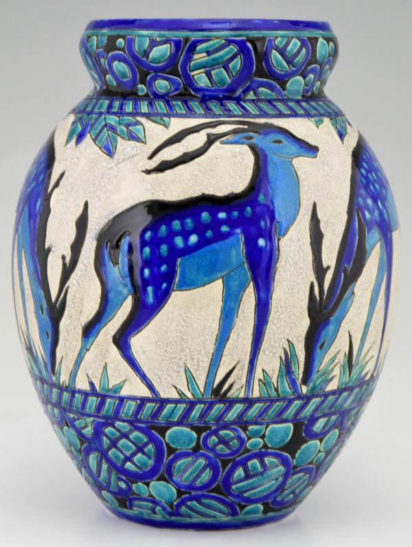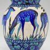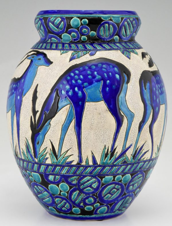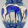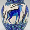 Charles Catteau Art Deco tall deer vase from the line Biches Bleues for Boch freres, La Louviere, Belgium.