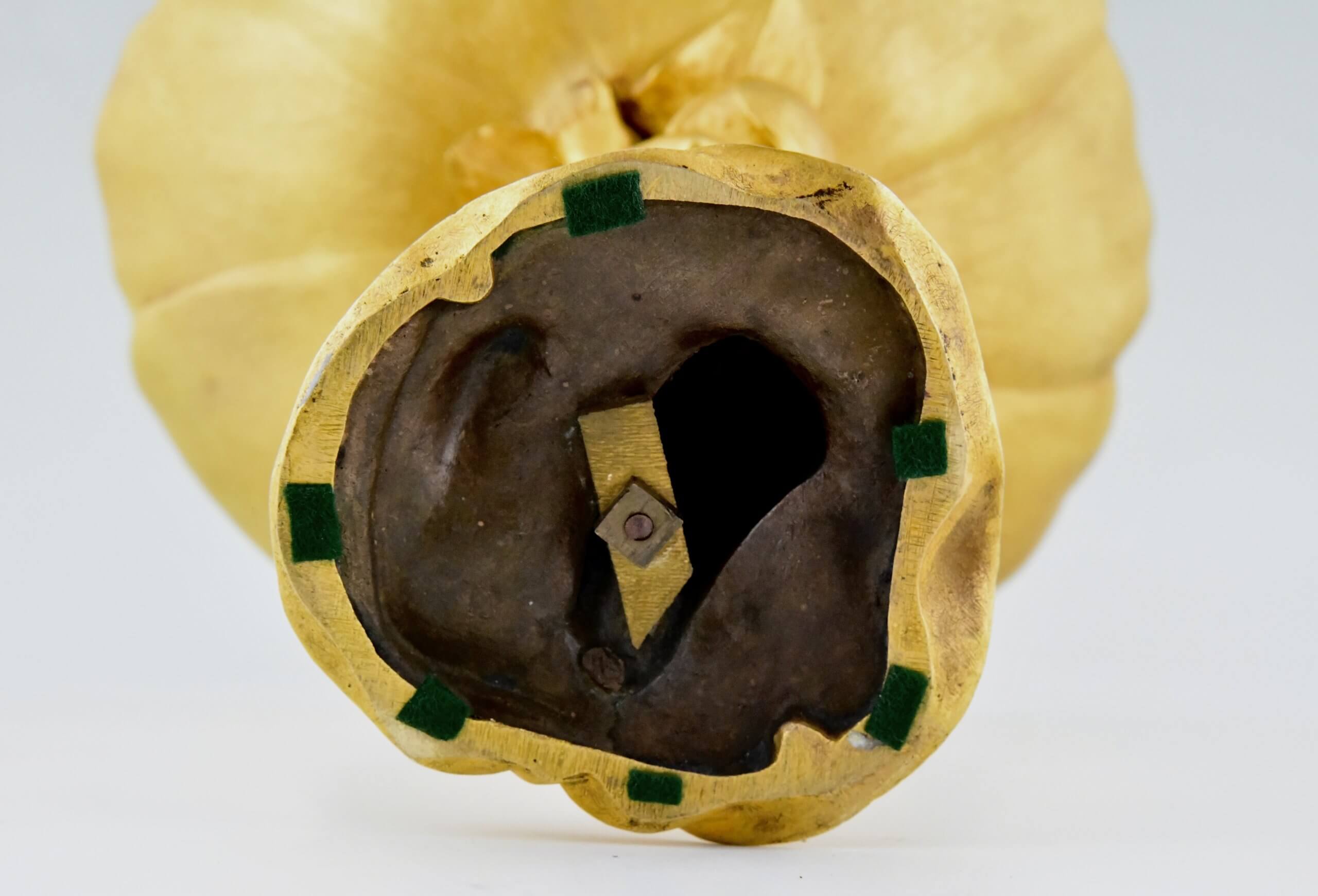 La coupe Art Nouveau Maurice Bouval est réalisée en bronze doré finement ciselé. Les lignes fluides, les formes organiques et la qualité du modelé reflètent parfaitement l’esthétique décorative développée dans les arts parisiens au tournant du siècle.