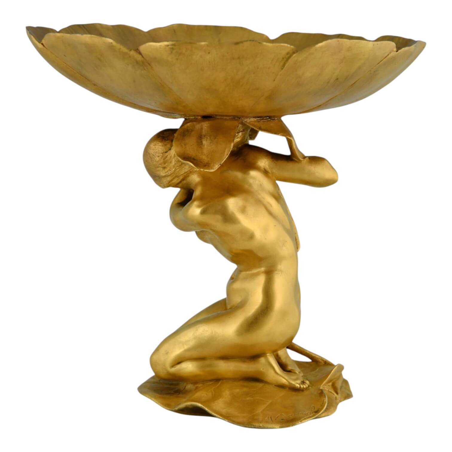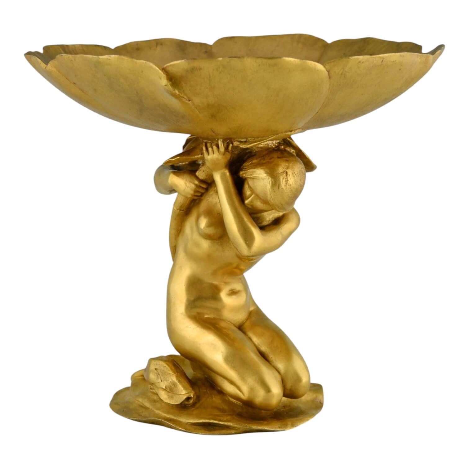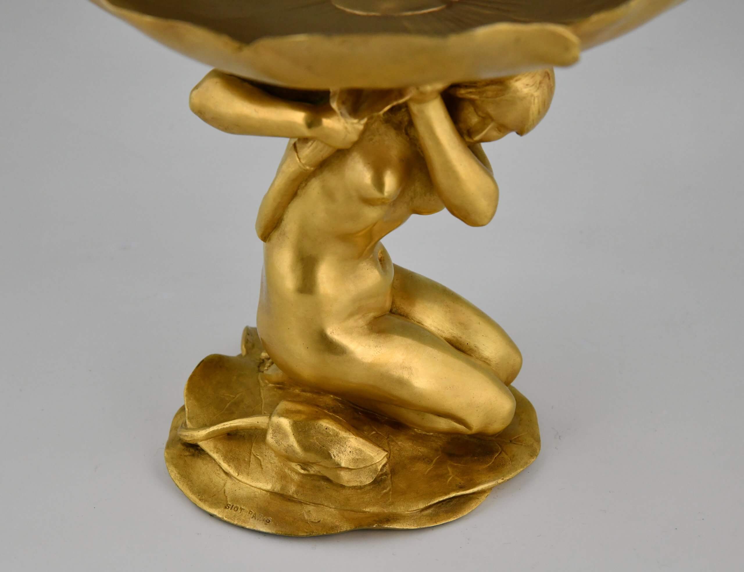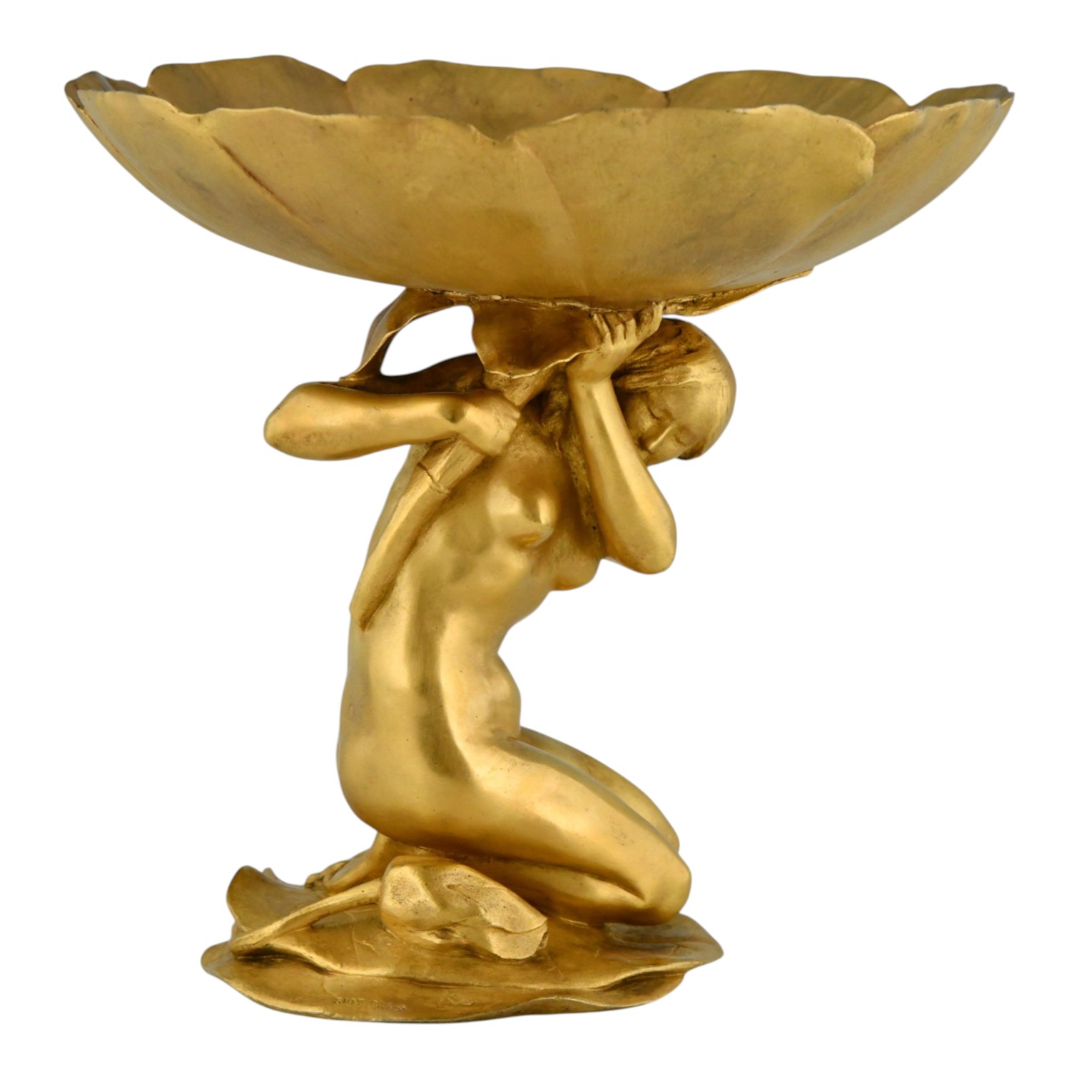 Coupe en bronze doré Art Nouveau Femme au Nénuphar
