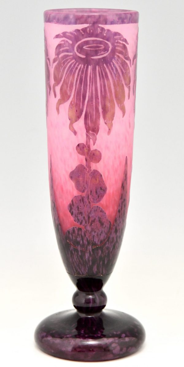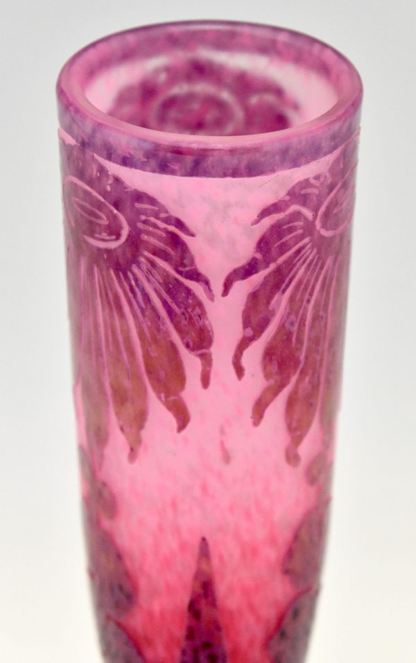 Art Deco cameo glass vase with flowers by Charles, Schneider for Le Verre Français.