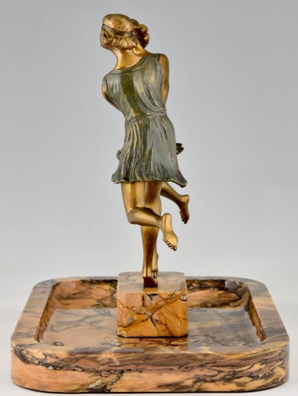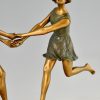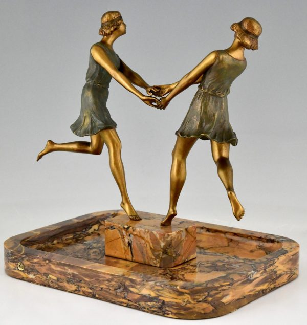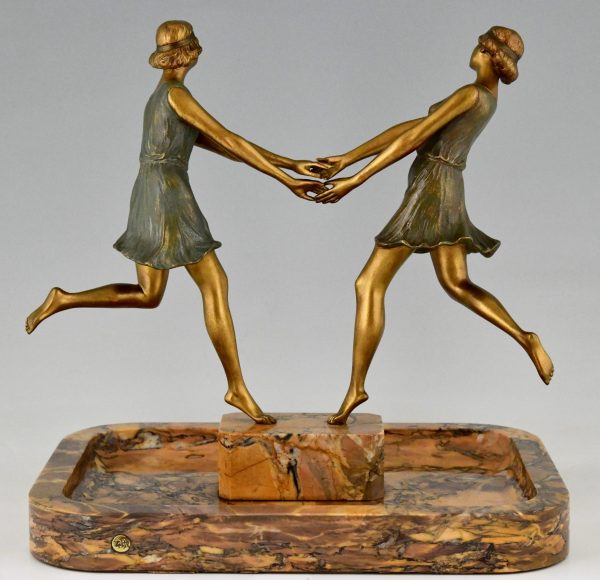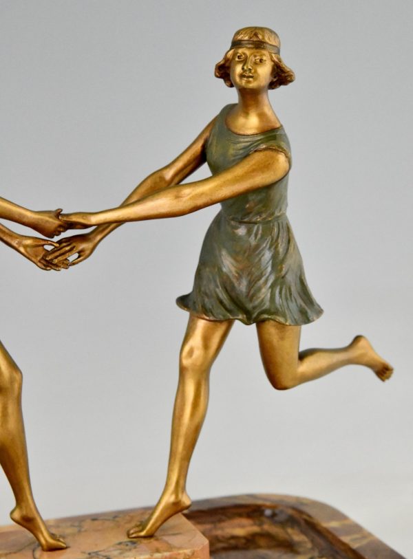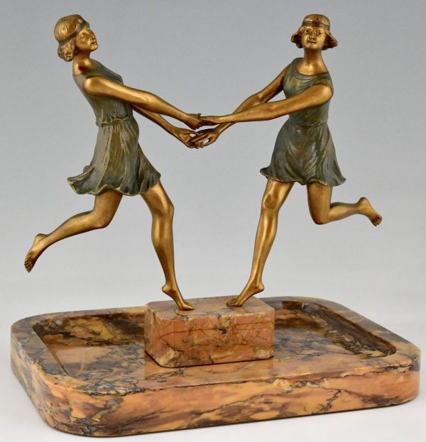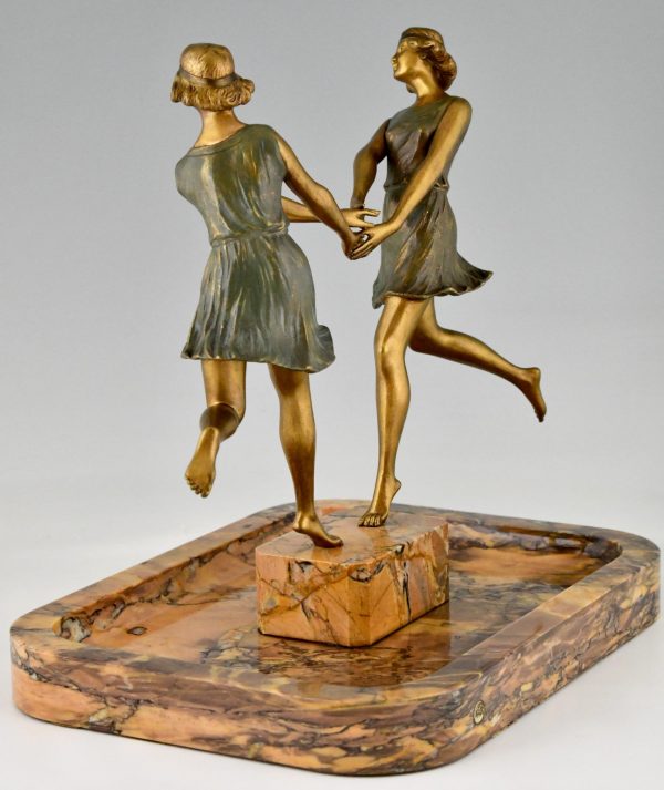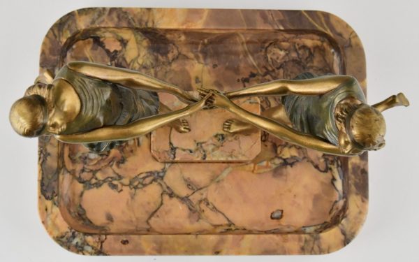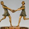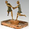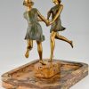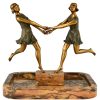 Pièce centrale Art Déco en bronze et marbre avec deux danseurs