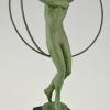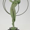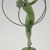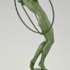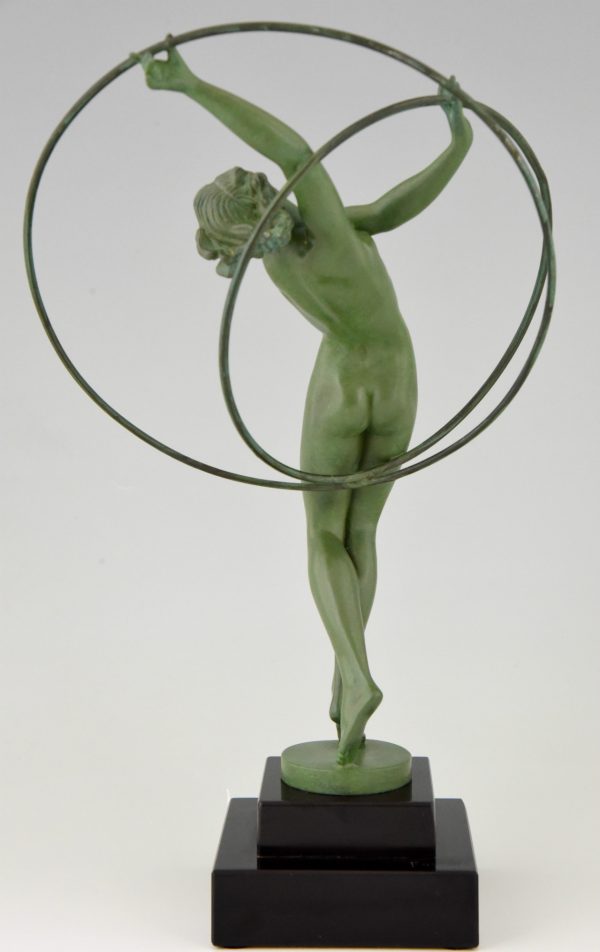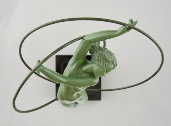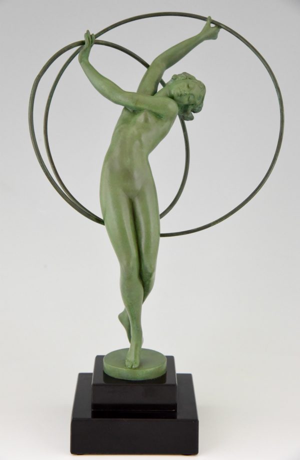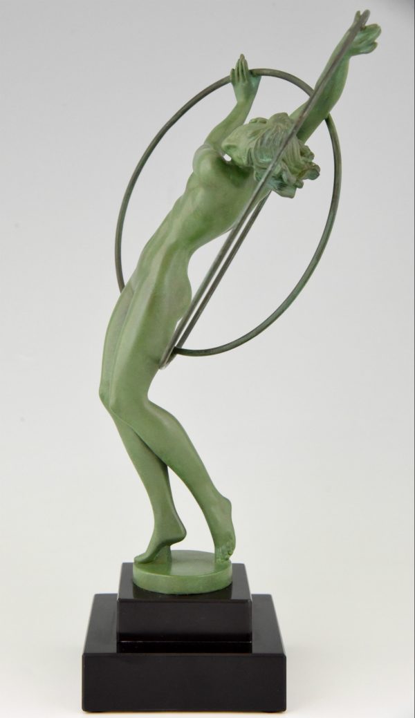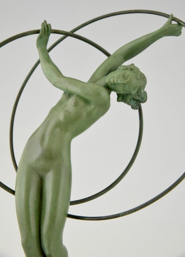 Elegant Art Deco nude hoop dancer signed Fayral, pseudonym of the french artist Pierre Le Faguays.