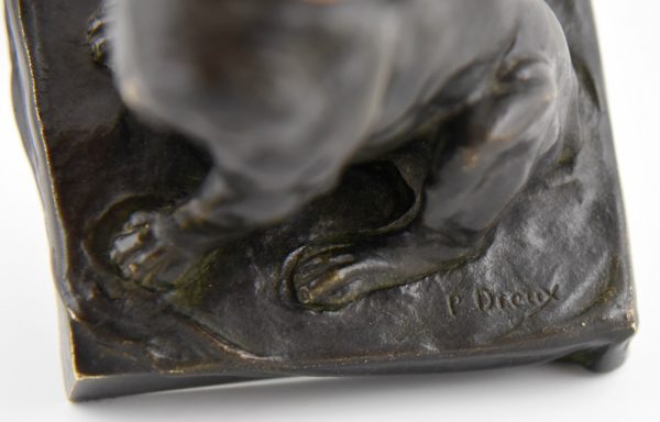 Lovely sculpture of a sitting French Bulldog by the famous animalier Paul Edouard Dreux 1885-1947.