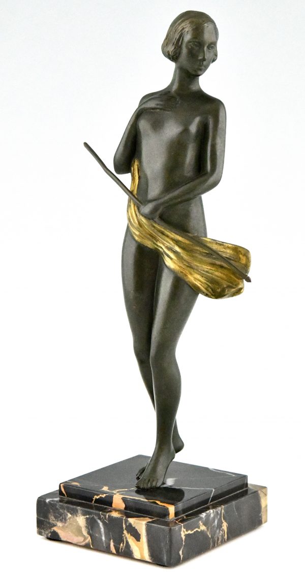 Sculpture en bronze Art Déco nu au drapé par Lucien Alliot.