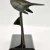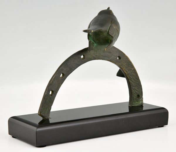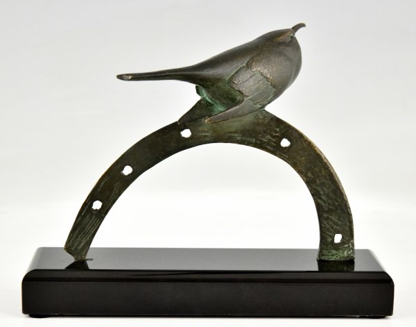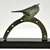 Sculpture en bronze Art Déco oiseau sur fer à cheval