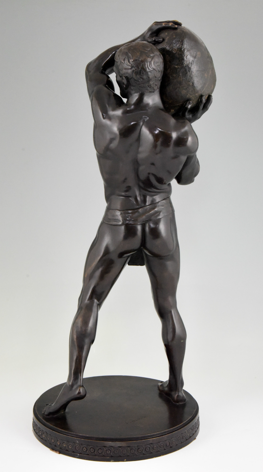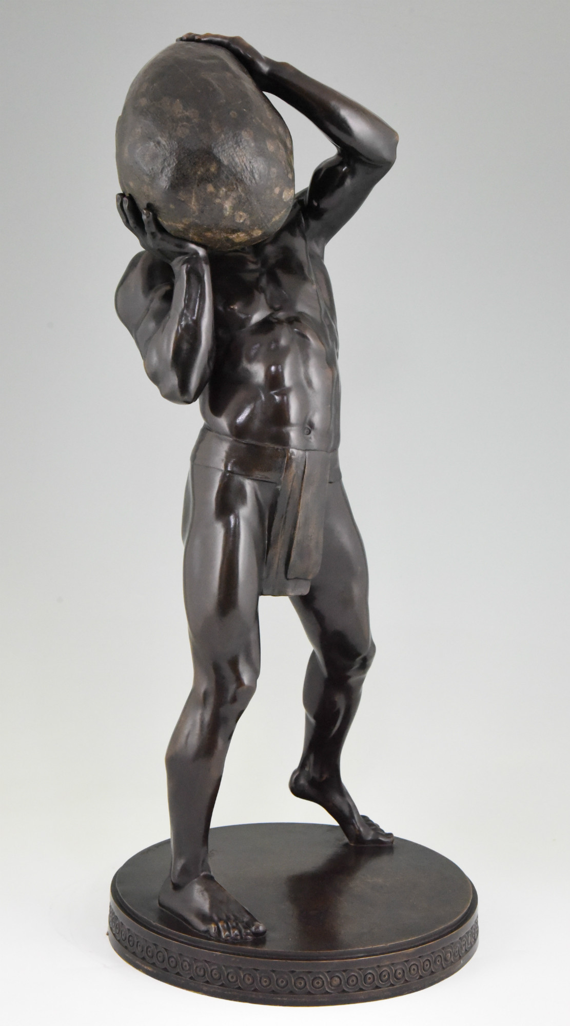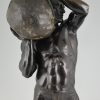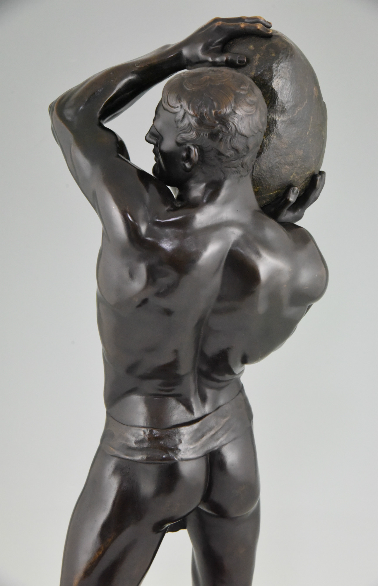 Sculpture en bronze nu masculin, athlète avec pierre.