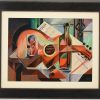 Tableau cubiste nature morte avec guitare